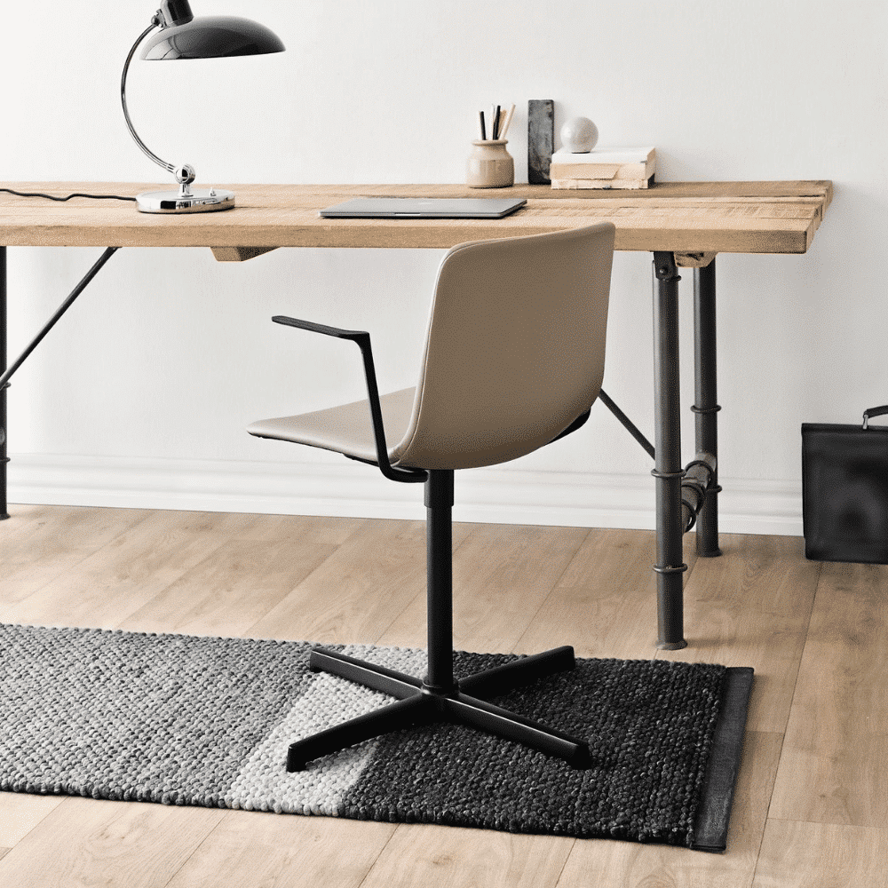 La alfombra de lana Landscape es una moderna alfombra de lana gruesa. Está fabricada de forma sostenible con UPWOOL™, una mezcla de lana técnica que combina lana de desecho con lana fresca entrelazando las fibras.