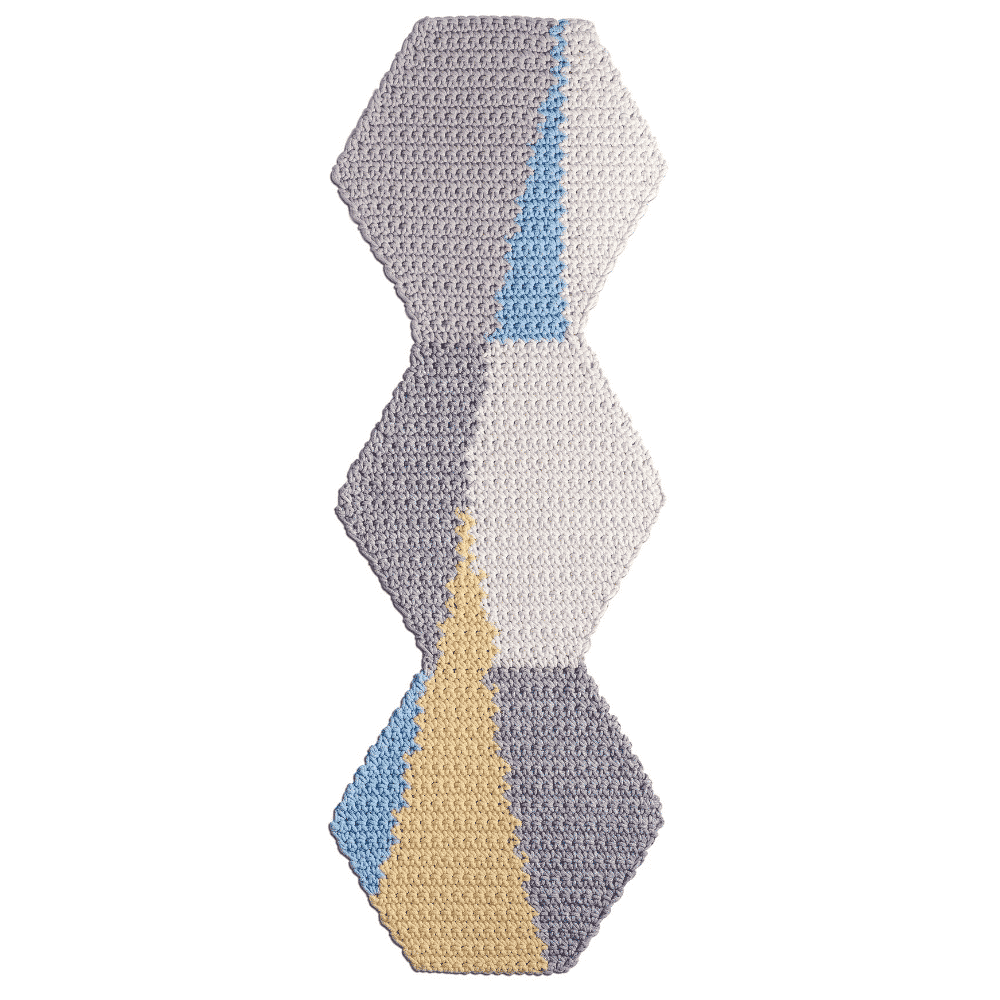 Esta moderna alfombra corredora de algodón 100%, es ideal para dormitorios o pasillos. Las alfombras son tejidas a mano en la técnica de crochet con cordones de algodón de alta calidad hechos de algodón reciclado sin ningún tipo de uso de tintes o tóxicos.