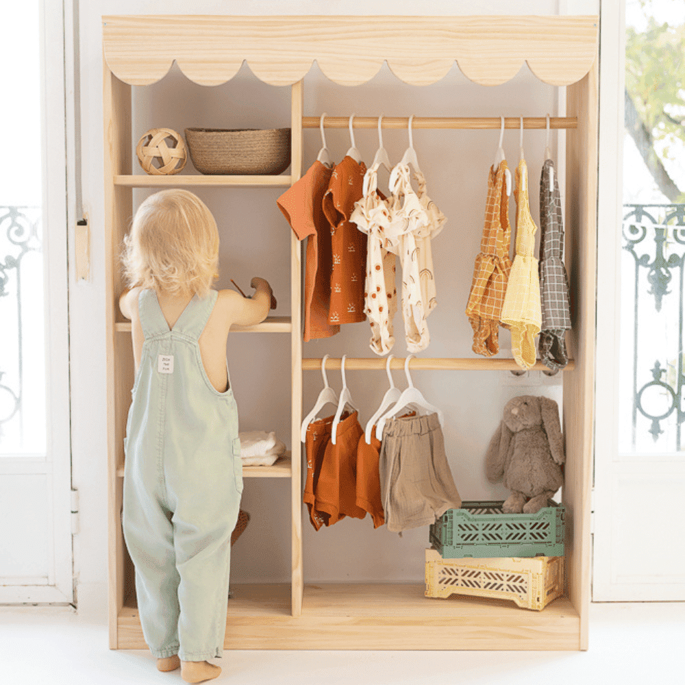 El Armario Montessori Tienda, ayuda a fomentar la autonomía de tu peque, el orden de sus cosas personales y ahorra tiempo cuando sea totalmente independiente para vestirse y desvestirse.
