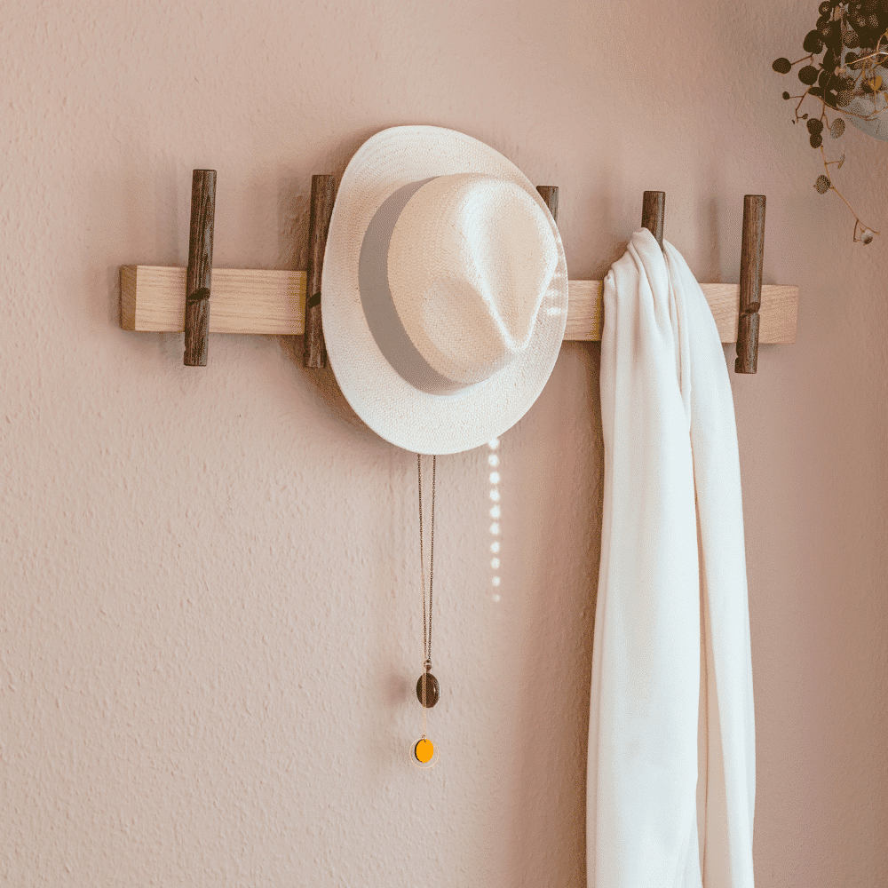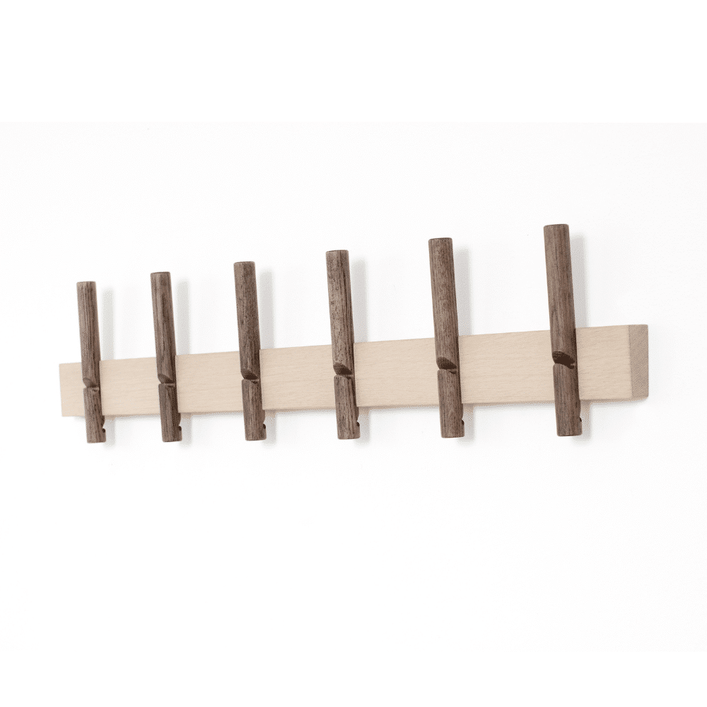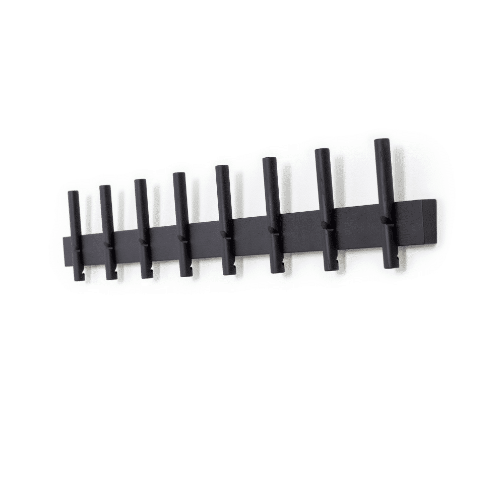 Su diseño funcional y único añade una dimensión extra a su versatilidad. Las perchas verticales con ranuras fresadas intrincadamente, hacen que cada percha pueda sostener múltiples piezas de ropa y accesorios sin sensación de hacinamiento.