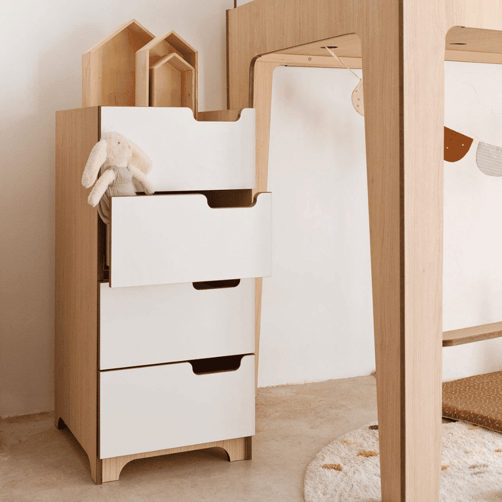 ¿Necesitas una solución de almacenamiento sencilla y efectiva para la habitación de tus hijos? Nuestra cómoda de 4 cajones es la opción perfecta para aquellos que buscan un complemento a su habitación con estilo.