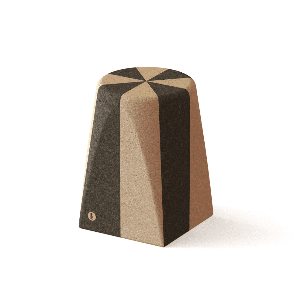 Con un fuerte carácter geométrico, el taburete o mesita de apoyo DUO es un fantástico diálogo entre el corcho claro y el oscuro. DUO existe en 5 versiones. Cada una de ellas se eleva desde su patrón bidimensional de azulejos a un volumen tridimensional, terminando en una forma circular.