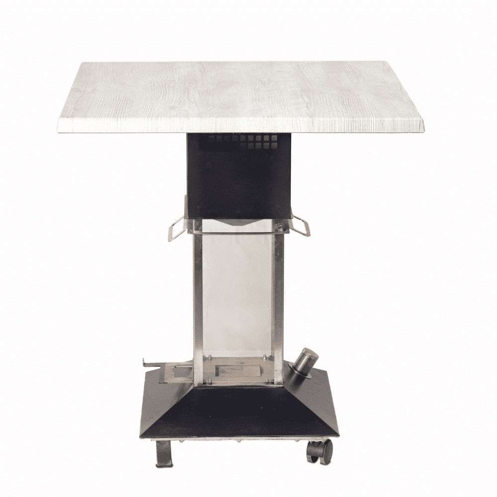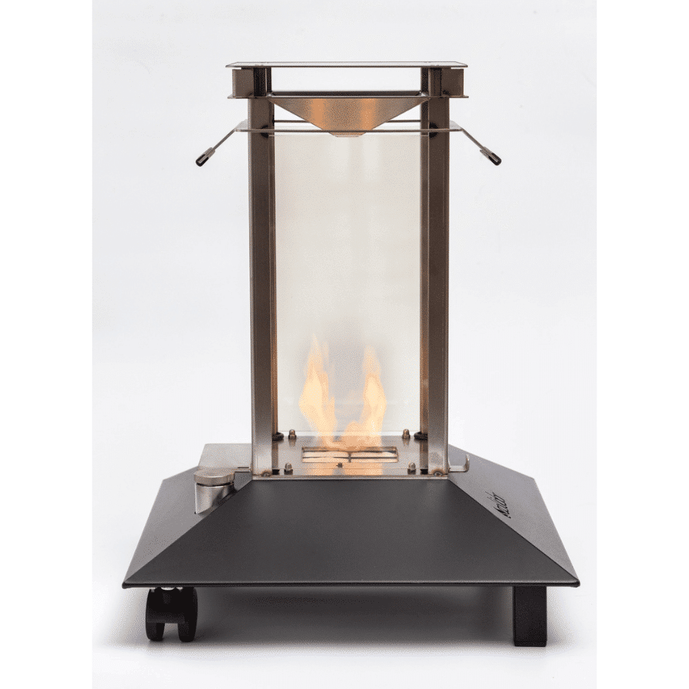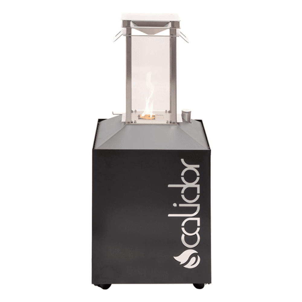 Su estructura de Acero inoxidable cuenta con una base donde se situa el depósito de plástico especial , utilizado por tratarse de una material no-corrosivo, sin porosidad que asegura la estanquedad del bioetanol y es capaz de resistir altas temperaturas.