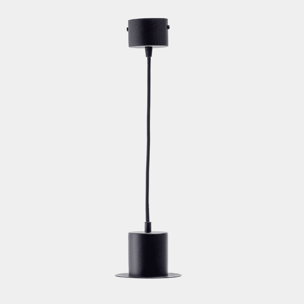 La lámpara de techo colgante Hat está elegantemente realizada con aluminio, un material caracterizado por su fuerte carácter y su resistencia, transmitiendo una sensación de atemporalidad. El color negro de este diseño de lámpara sostenible denota un estilo sofisticado y su acabado mate genera en ella un aspecto suave y afieltrado.