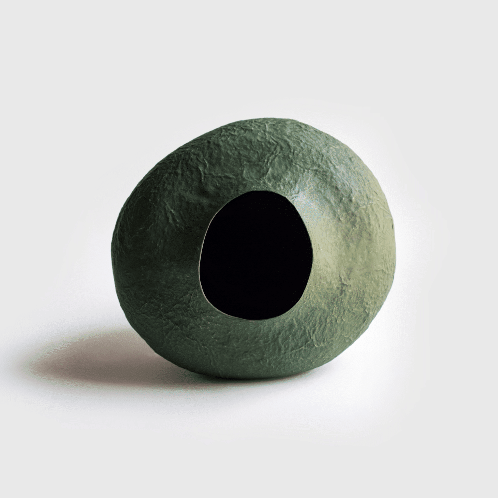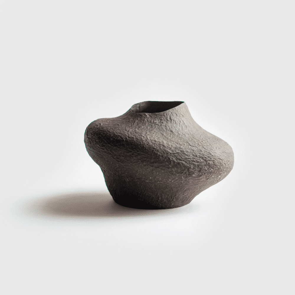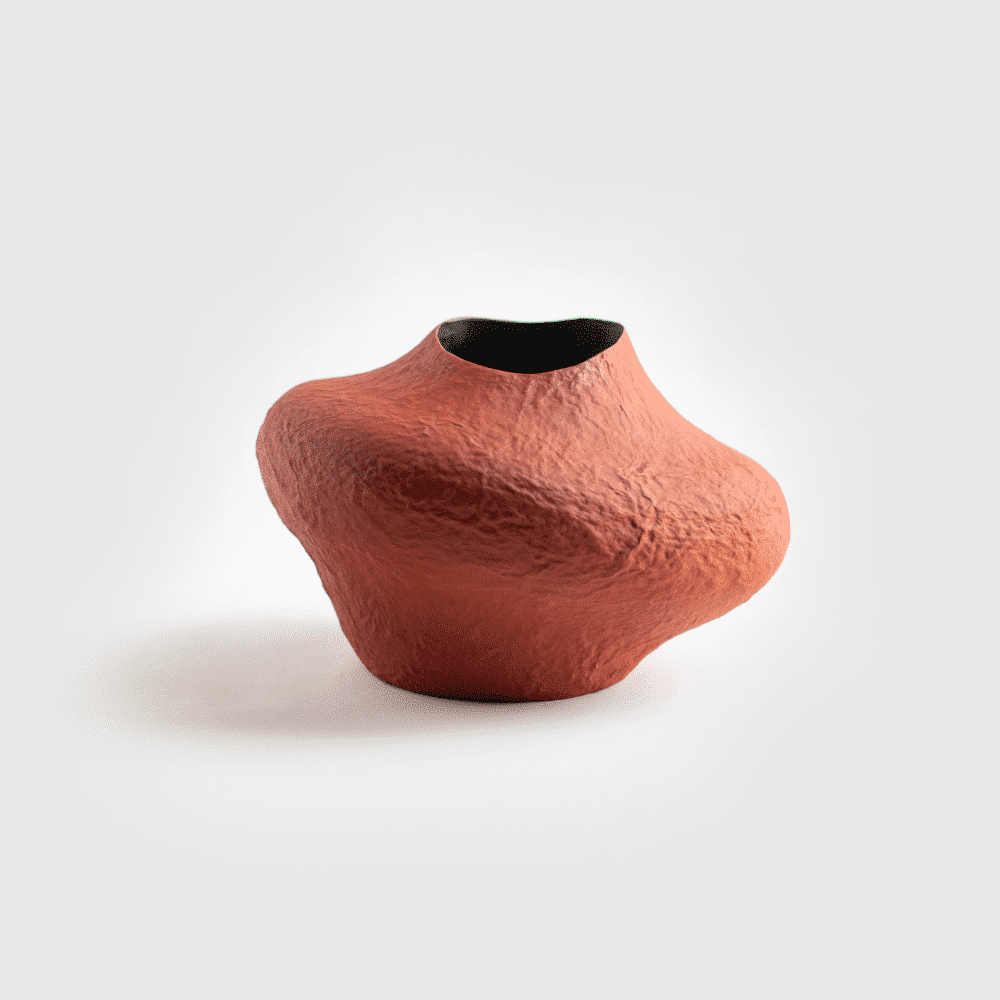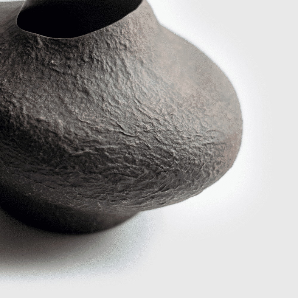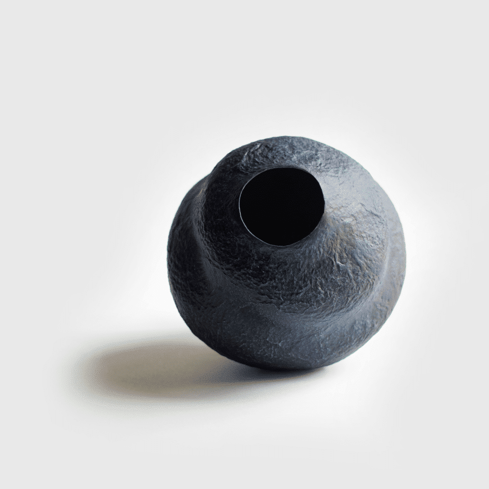Elaborado artesanalmente a partir de pulpa de periódicos, cola celulósica y pigmentos naturales. Todos estos componentes, así como el proceso de formación del jarrón, son respetuosos con el medio ambiente y ecológicos. Además, el jarrón es muy ligero, duradero y está cubierto con una capa protectora contra la humedad.
