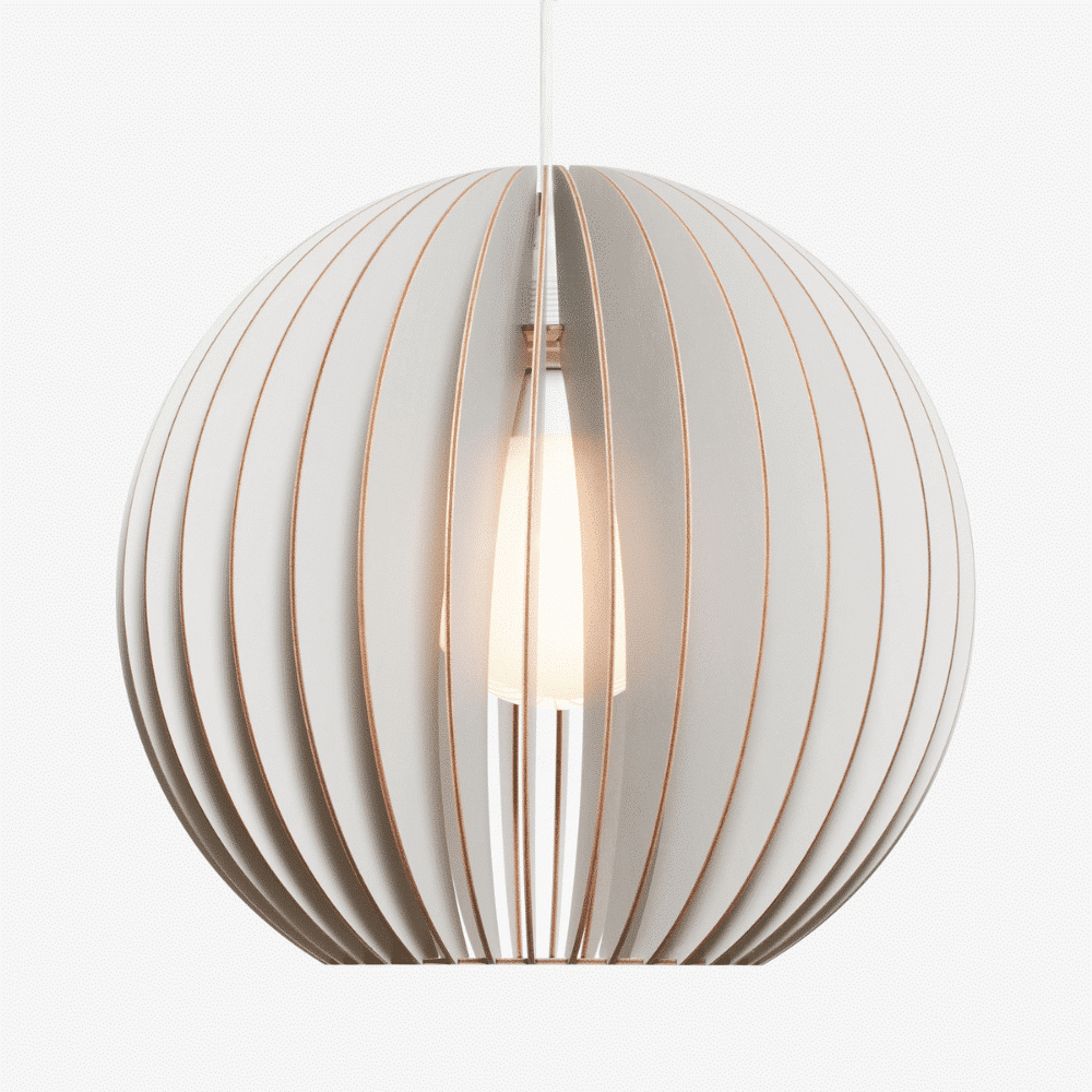 La lámpara Aion esta realizada con madera con certificación FSC. La madera está cortada con láser y acabada a mano con mucho cariño. Las lámparas de abedul están finamente lijadas y, por lo demás, no están tratadas. Las lámparas de colores están pintadas a mano con colores naturales.