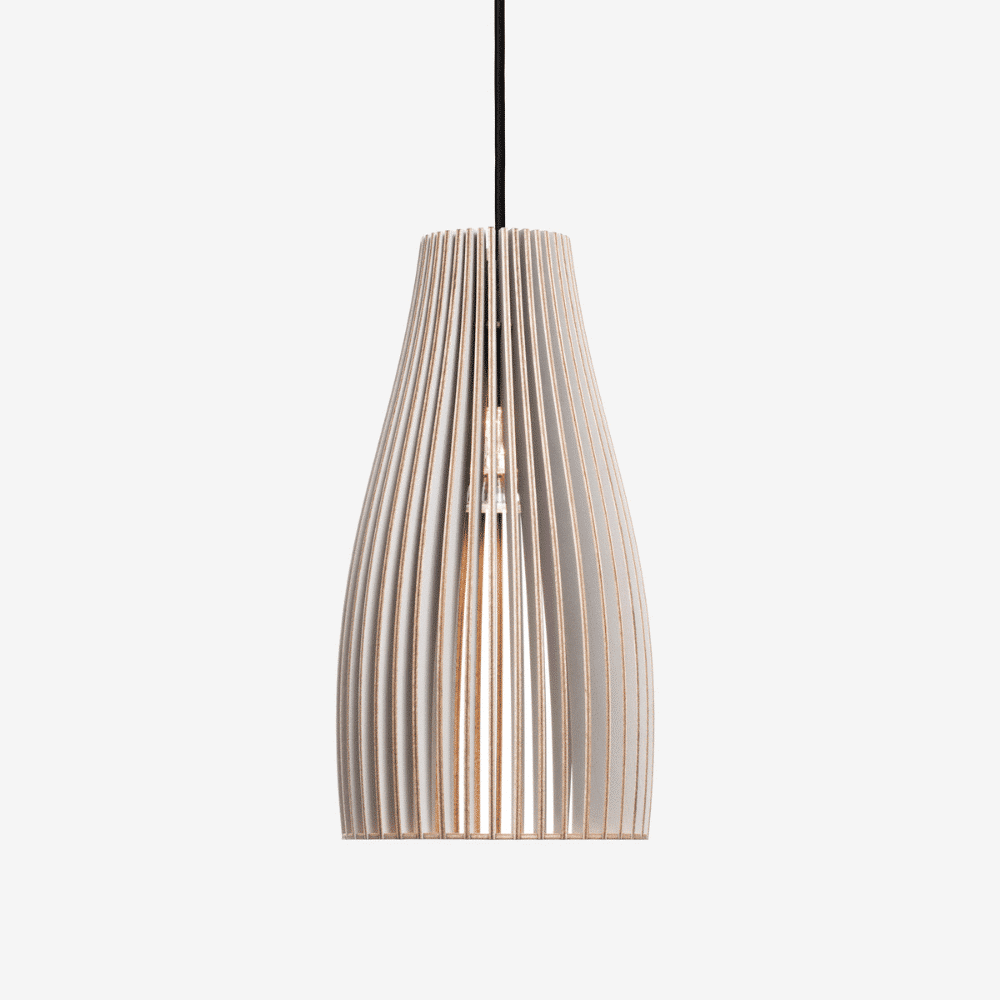 La lámpara colgante de madera Ena viene embalada en una caja de cartón impresa a mano y es fácil de montar, sin necesidad de tornillos ni pegamento. Las piezas simplemente se encajan