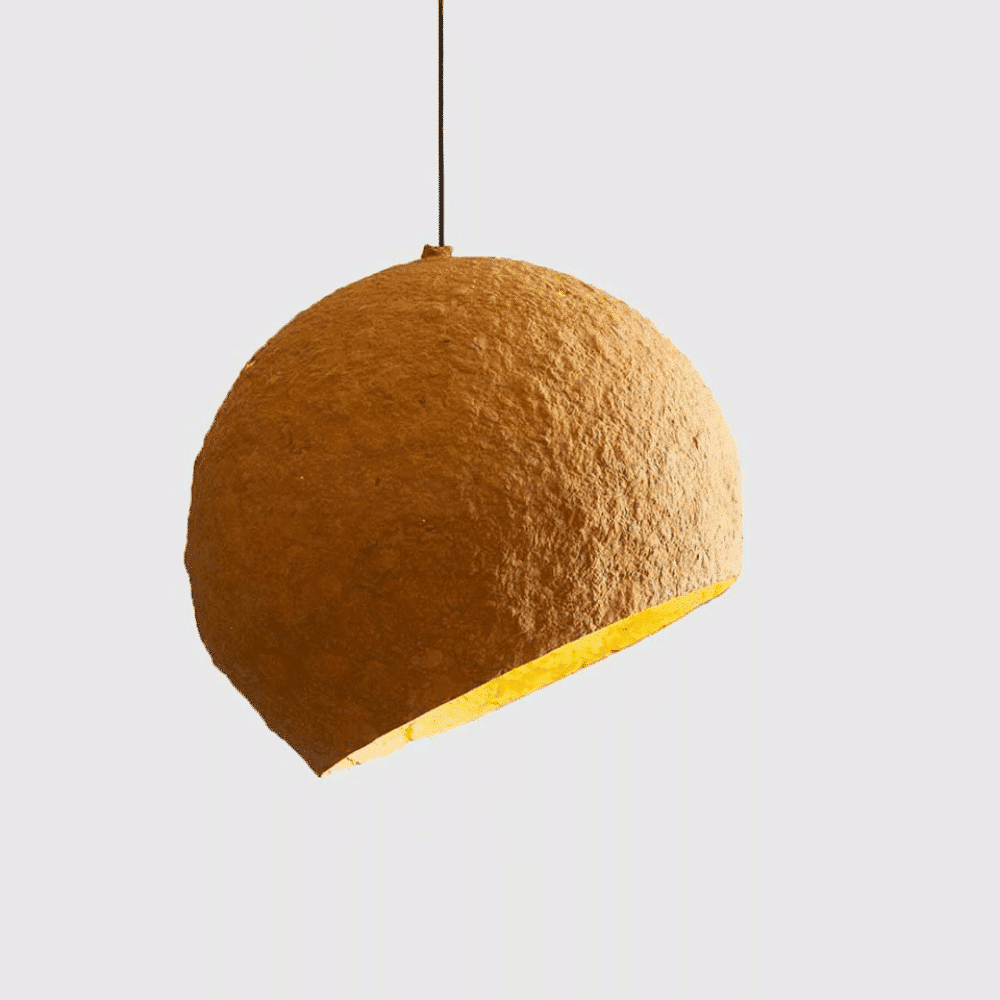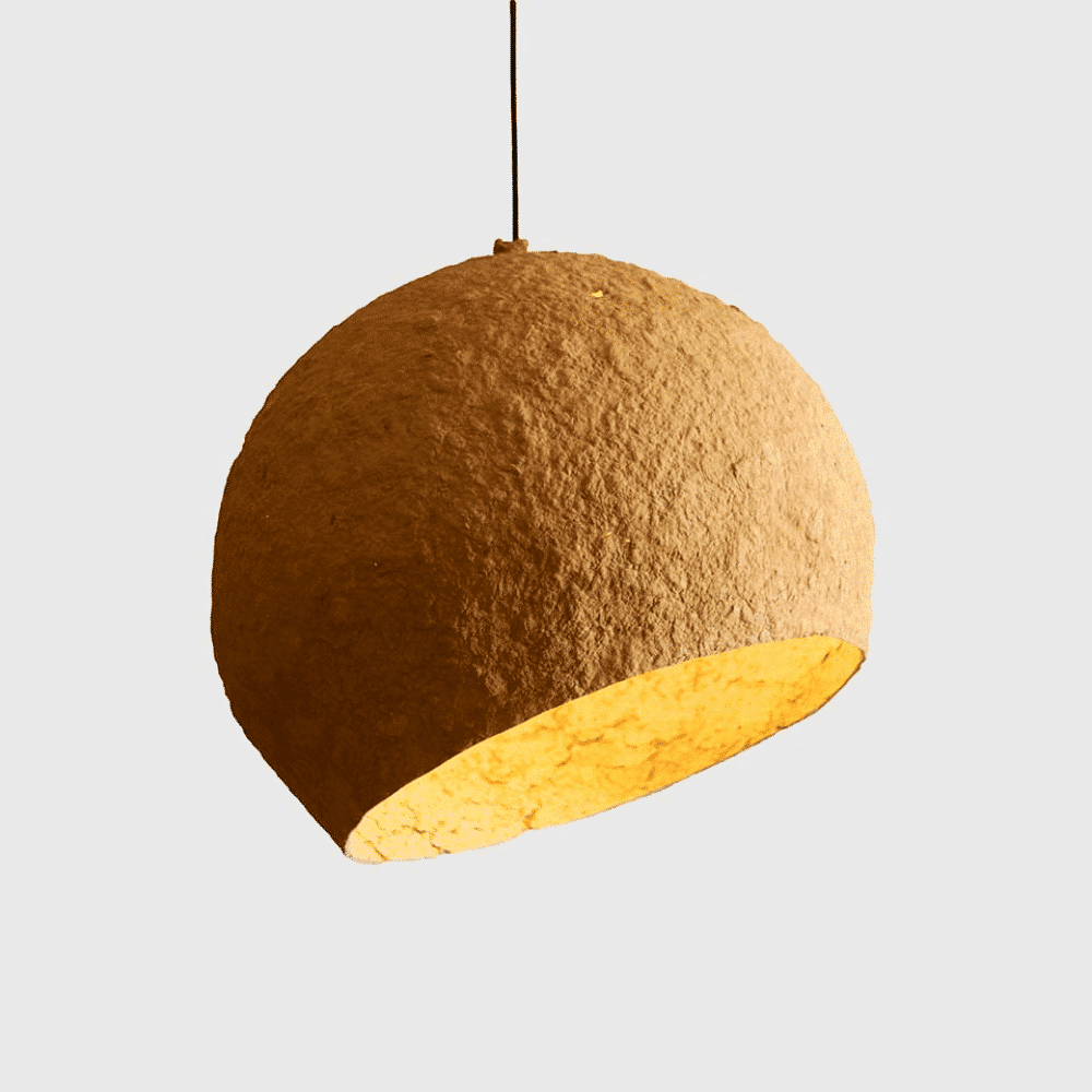 Jupiter es una lámpara colgante sostenible realizada con papel maché diseñada para iluminar el hogar con una luz cálida y agradable gracias al especial color ocre de su pantalla.