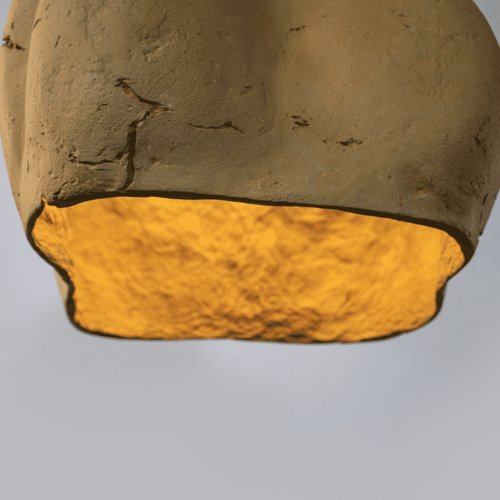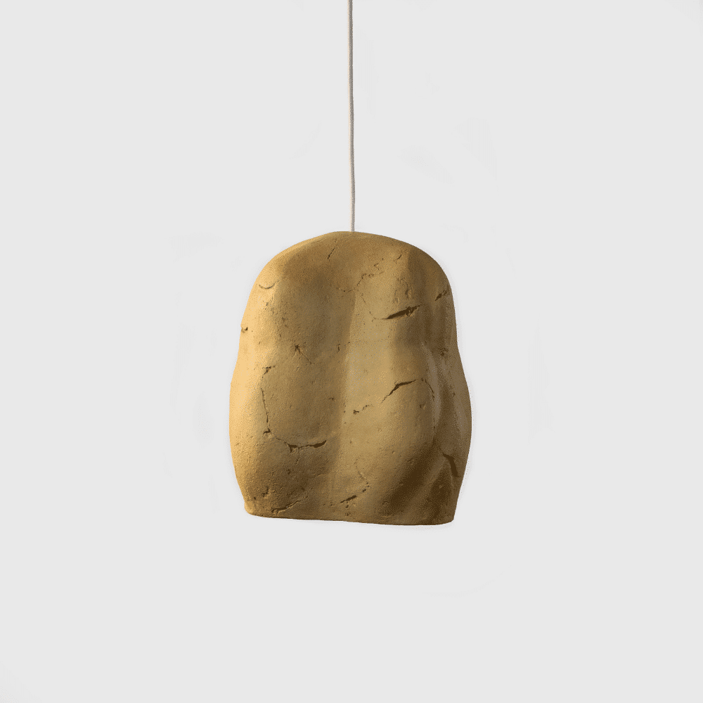 La lámpara tiene una forma orgánica y escultórica.