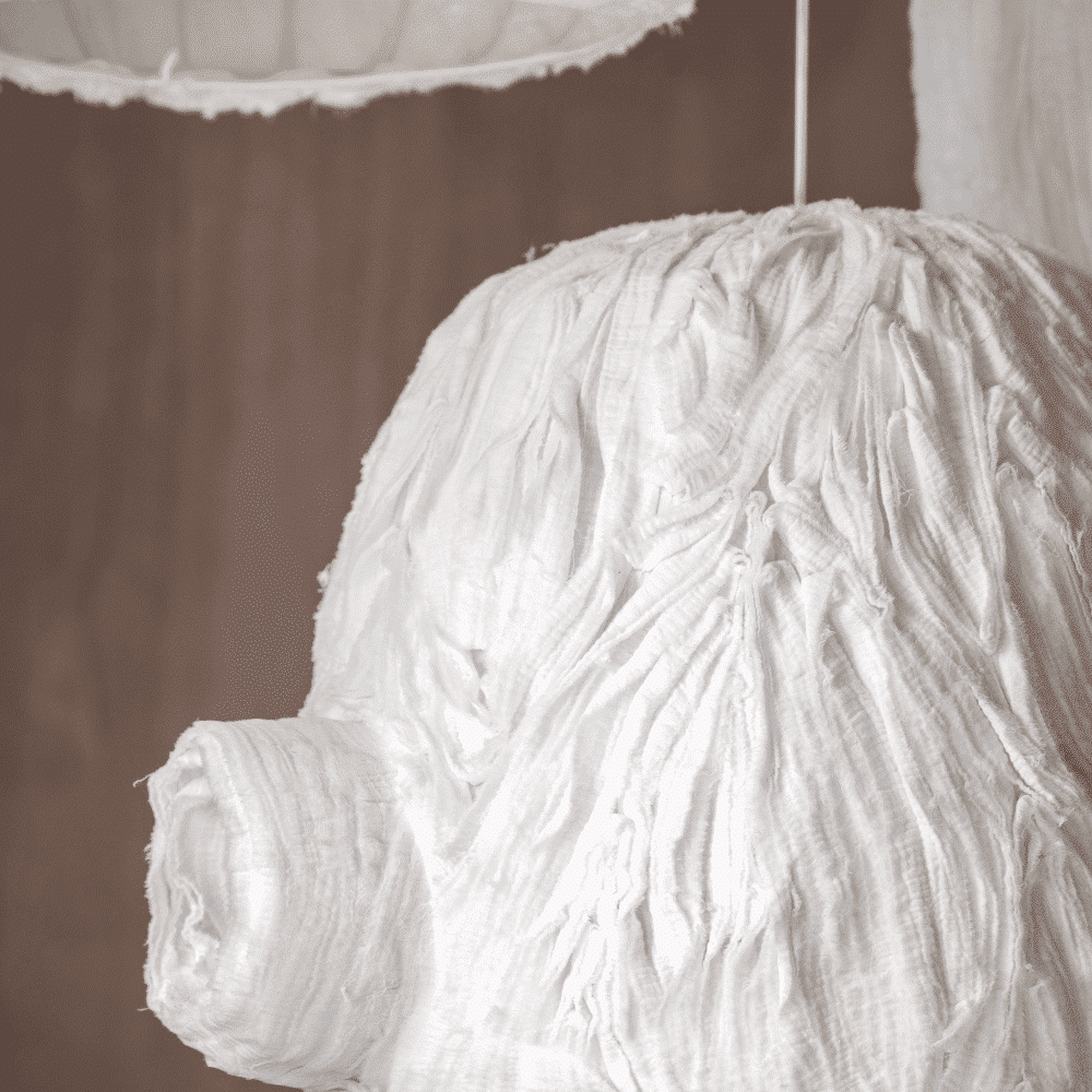 La textura de los productos se asemeja a un órgano sensorial independiente. buscábamos un textil que pudiera soportar la forma durante mucho tiempo y encontramos un tejido ecológico especial, esponjoso y transpirable llamado «muselina».