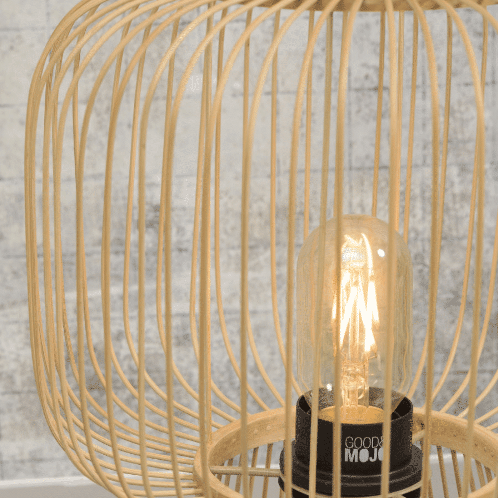 La lámpara de mesa Cango está hecha de bambú a mano. Las cuevas Cango están en las faldas de Swartberg en Sudáfrica con estalactitas y estalagmitas impresionantes.