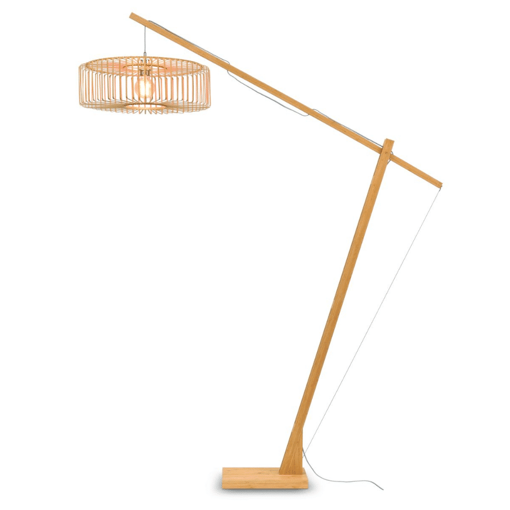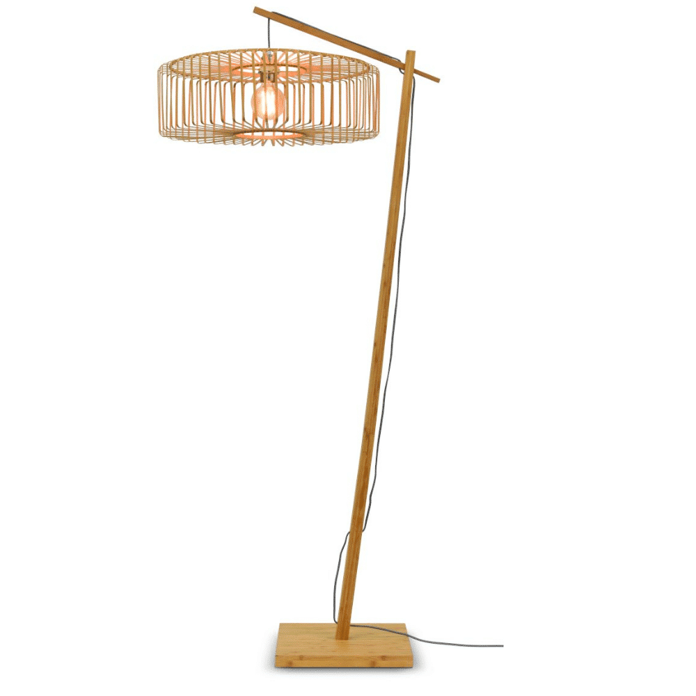 La lámpara de suelo Bromo está hecha de fibras robustas de bambú. Bromo es un volcán que aún se encuentra activo en la isla Indonesia de Java.