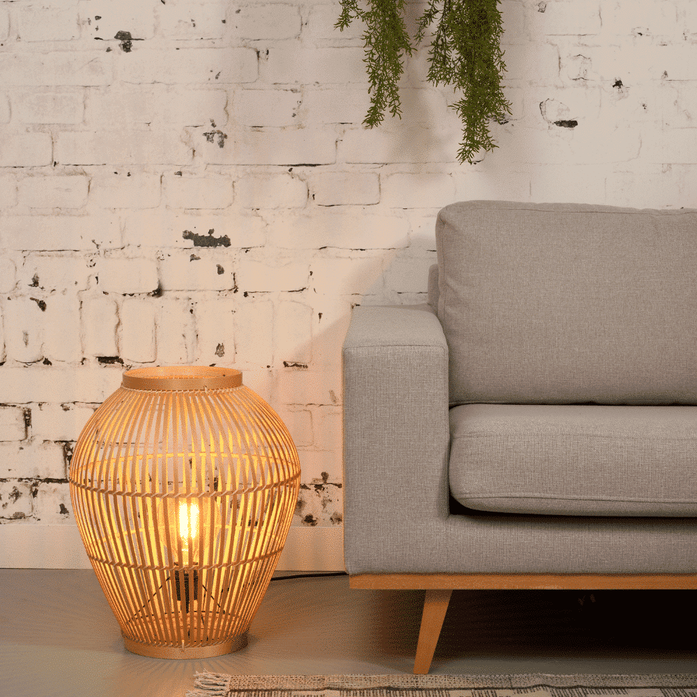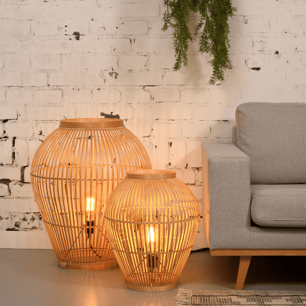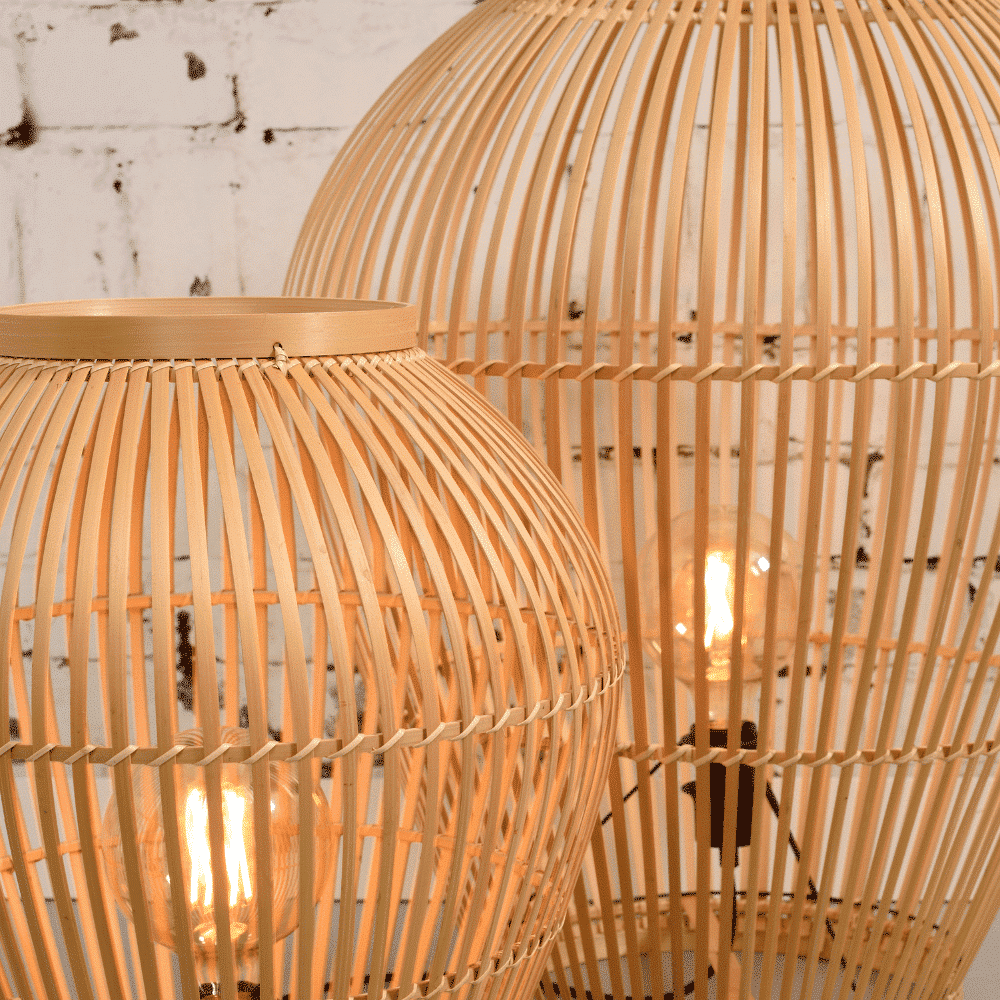 La lámpara de suelo Tuvalu está hecha de bambú, es biodegradable y está hecha a mano.
