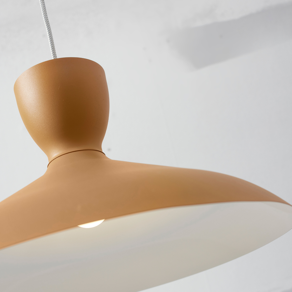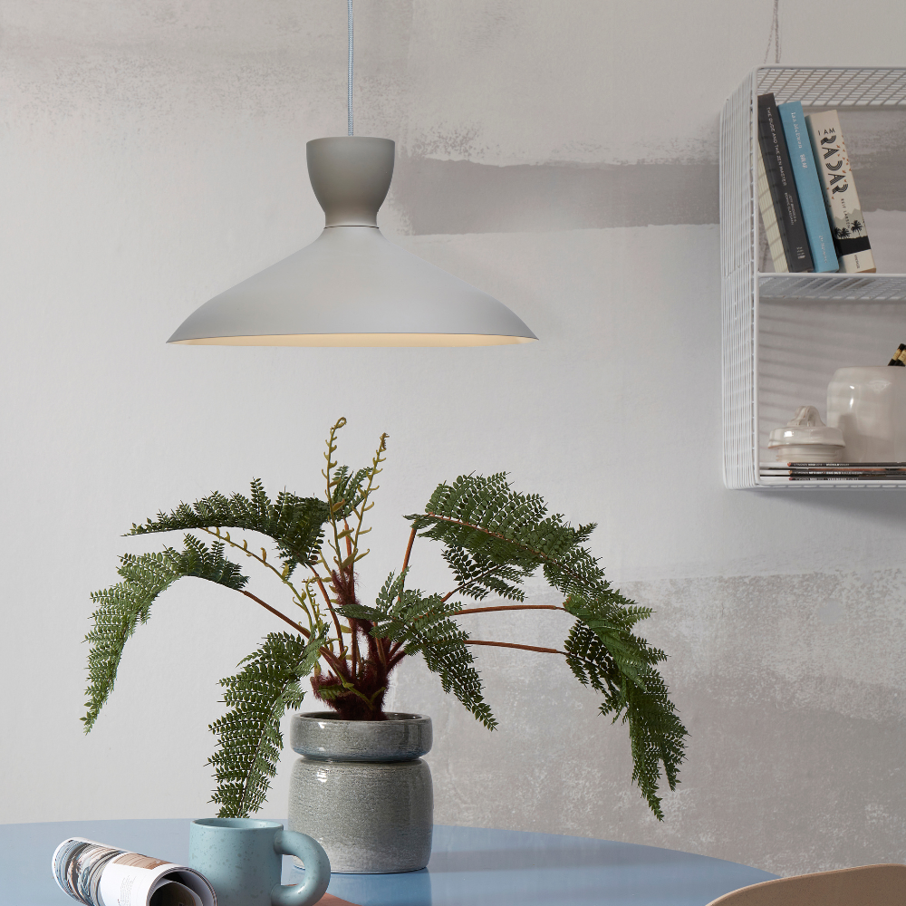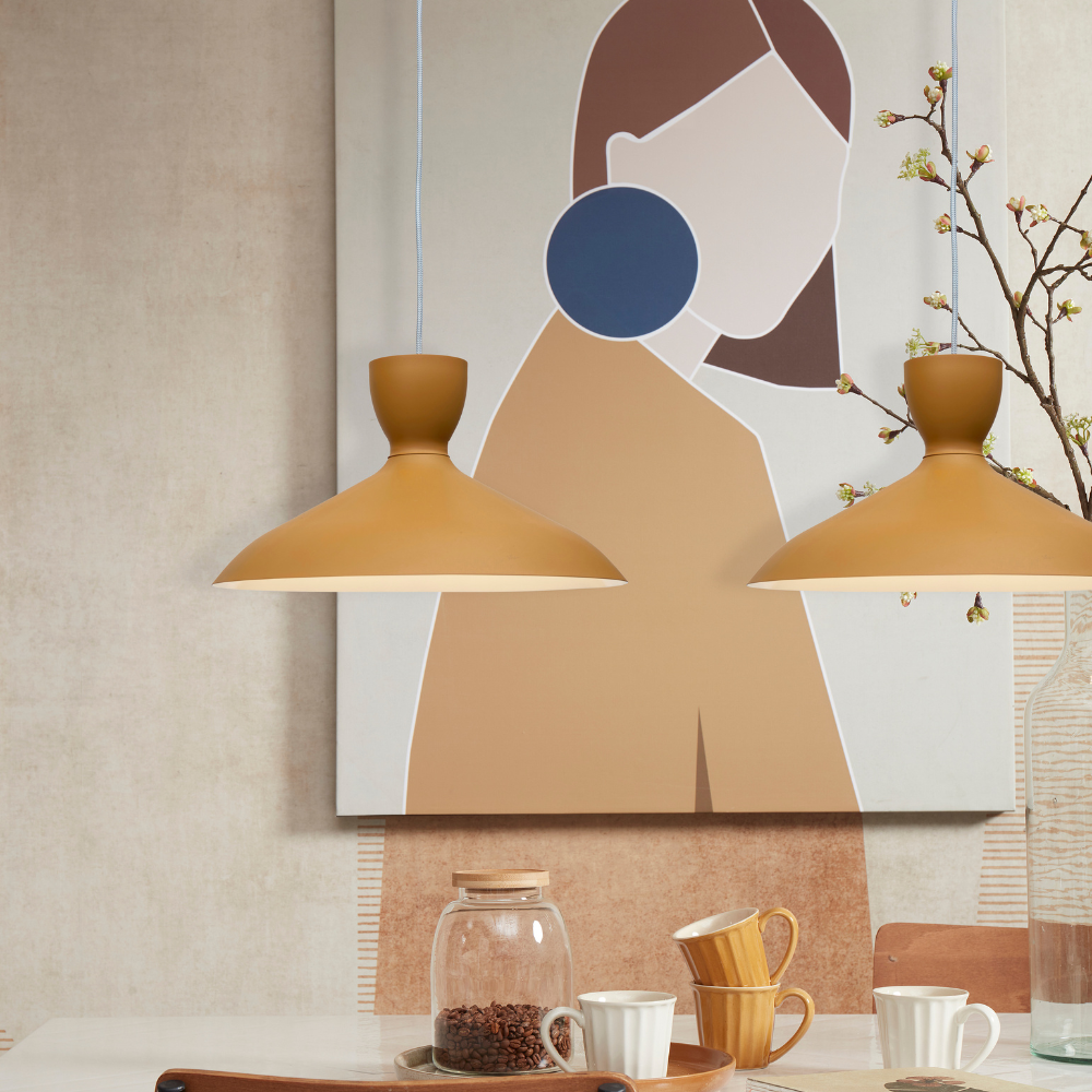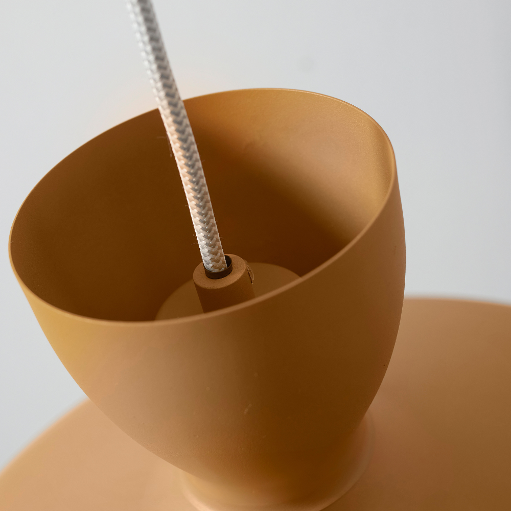 La lámpara de techo colgante de hierro Hanover aporta un aire de modernidad gracias a sus colores neutros. Está disponible en gris y mostaza.