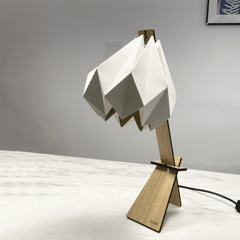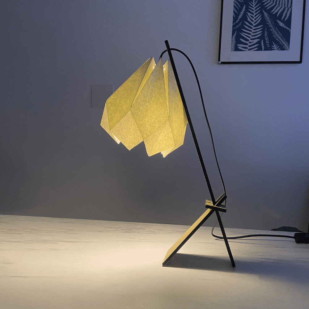 Nuestra lámpara se basa en la sencillez, inspirada en la técnica de plegado de papel oriental origami.