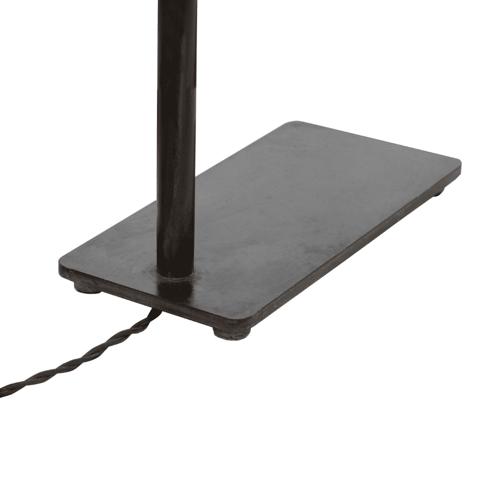Lámpara de hierro de sobremesa con pantalla de caña.