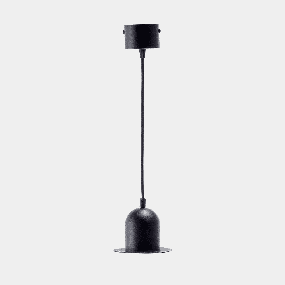 La lámpara de techo colgante Hat está elegantemente realizada con aluminio, un material caracterizado por su fuerte carácter y su resistencia, transmitiendo una sensación de atemporalidad. El color negro de este diseño de lámpara sostenible denota un estilo sofisticado y su acabado mate genera en ella un aspecto suave y afieltrado.