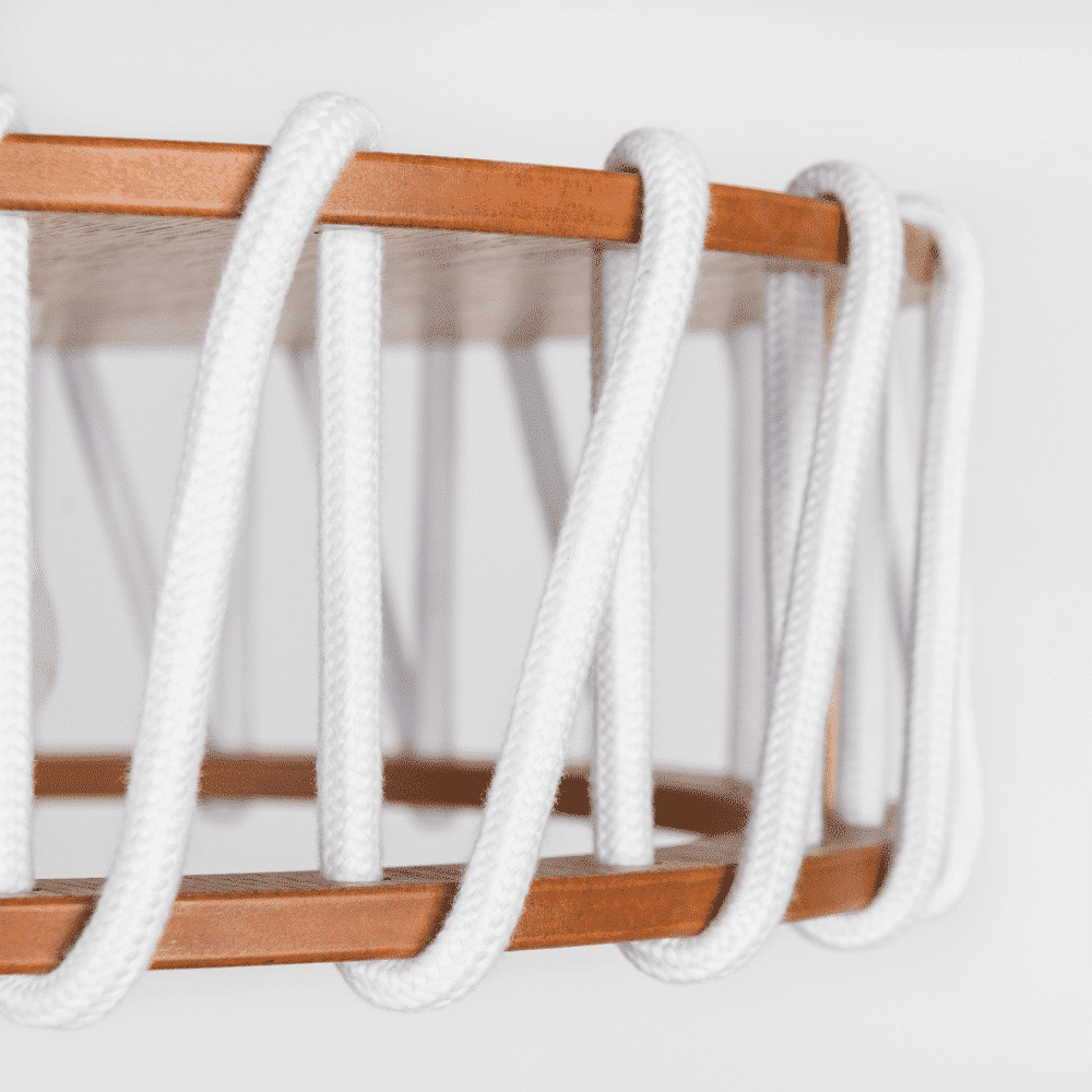 Macaron es una lámpara de techo sostenible realizada con un sólido marco de madera natural de roble y una cuerda de alta calidad, diseñada para añadir personalidad y creatividad a cada espacio del hogar, cocina, hotel, tienda u oficina, incluyendo el exterior, creando ambientes cálidos y especiales. Coloca esta lámpara de techo por encima de mesas o en rincones olvidados y te asegurarás de esta forma una decoración protagonista y con mucha vida.