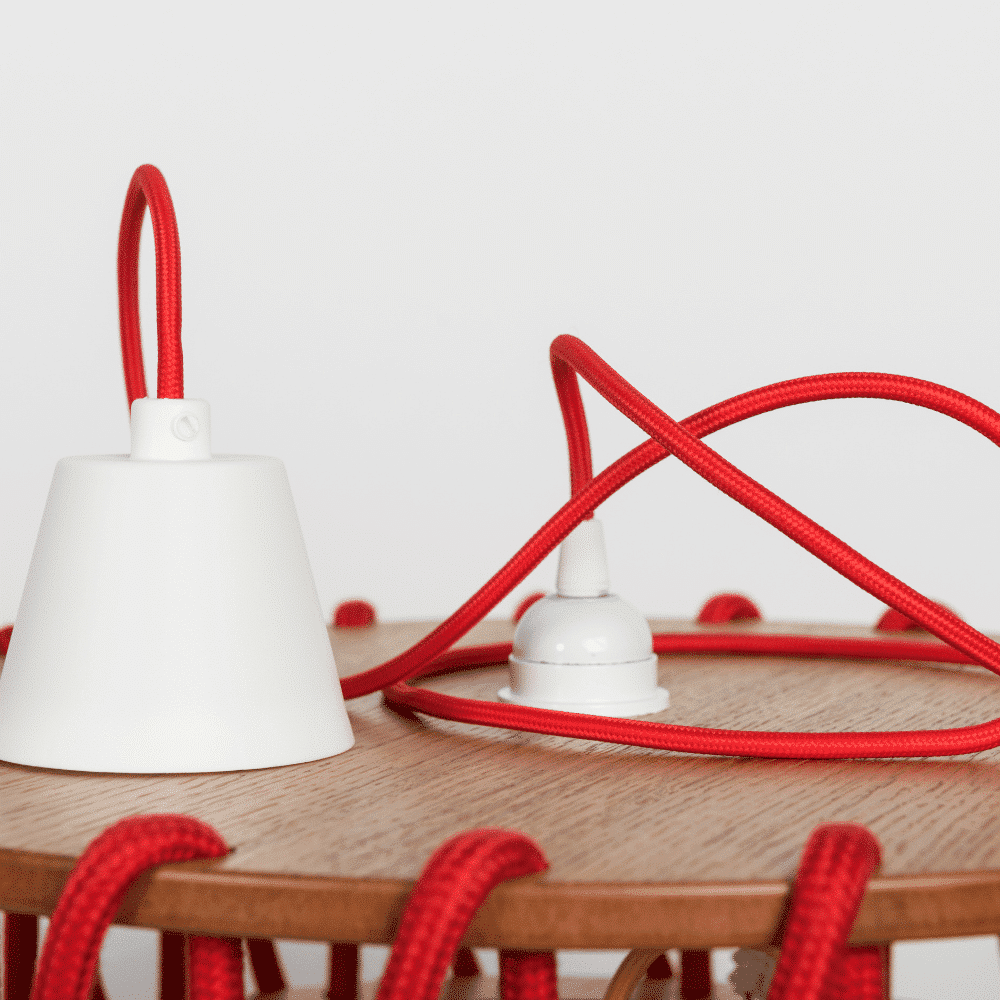 Para la pantalla de las lámparas se utiliza una cuerda de alta calidad, que puede escogerse en color amarillo rojo, azul, blanco o negro, según corresponda con la decoración que se desee imponer. Por otro lado, para el portalámparas de estas lámparas de techo, el material elegido es un termoplástico. Para la iluminación se debe utilizar una bombilla de luz led max 1×15 W (no incluida).