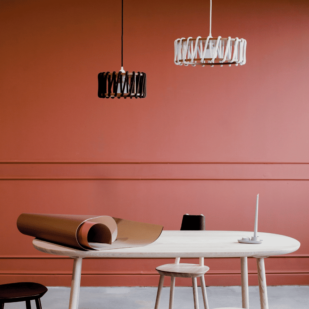 La lámpara de techo sostenible Macaron está disponible en tamaño pequeño y grande.