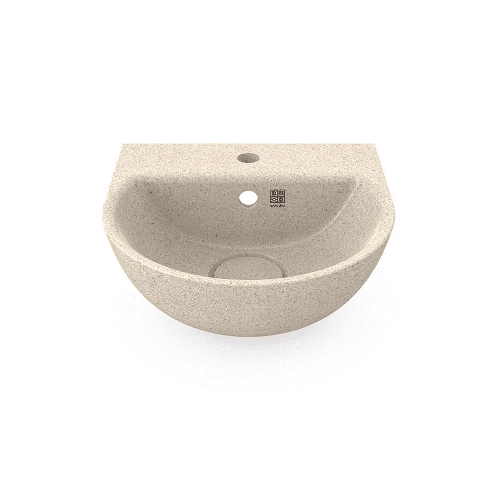 La tecnología del material de madera con patente en trámite es una combinación innovadora de adhesivos a base de madera y resina. Aproximadamente el 80% del contenido del producto es madera de origen local. El material de Woodio es mucho más resistente a los impactos que muchos otros materiales de baño, lo que lo hace prácticamente irrompible en el uso normal. No necesita mantenimiento y su vida útil es la misma que la de cualquier otro material de baño tradicional, o incluso más larga.