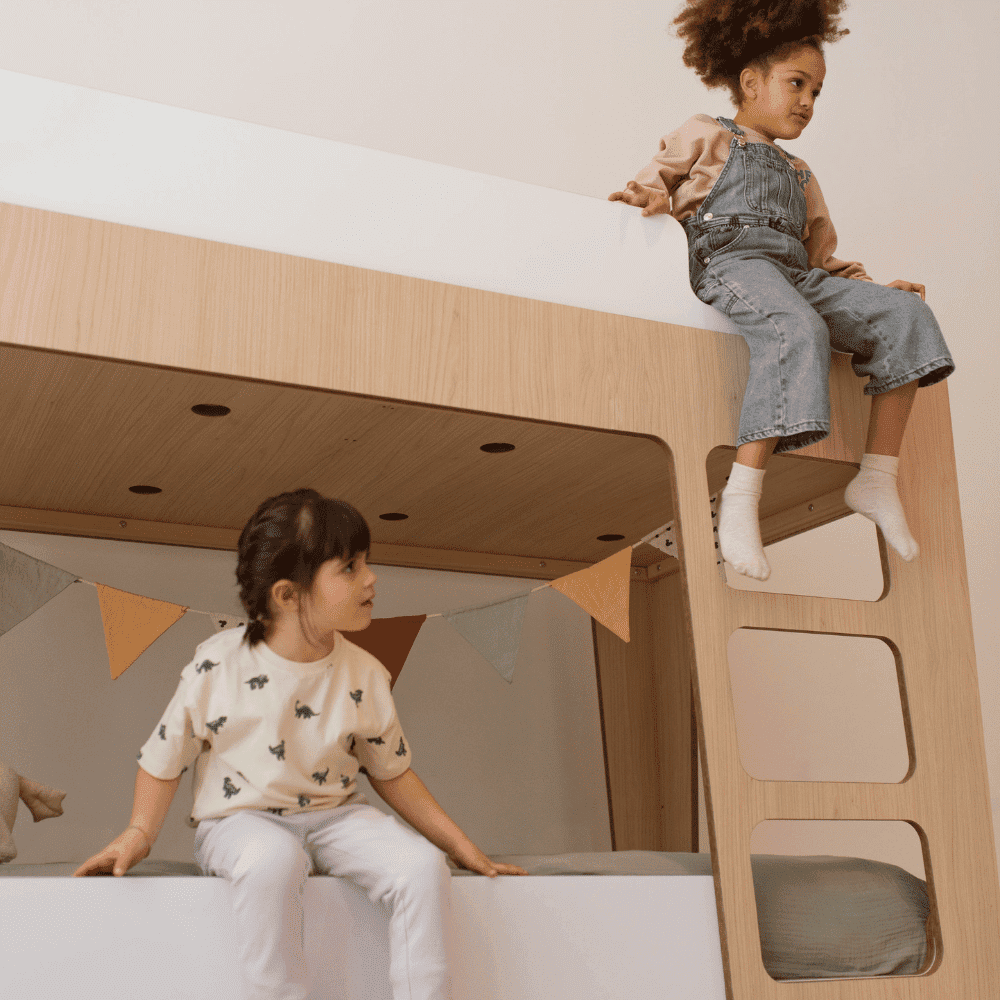 Para aquellos lugares donde el espacio es escaso, o cuando la logística familiar requiere que tus dos pequeños compartirán habitación, nuestra literatura doble es la solución perfecta. Pensada para incluir dos camas en un espacio reducido, su diseño funcional y estética armonizada la convención el espacio ideal en el que crear dos mundos: el de arriba y el de abajo.