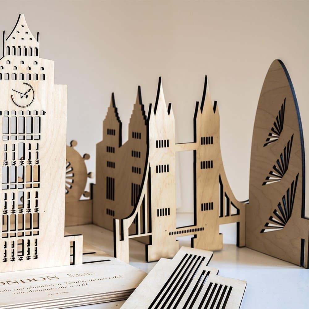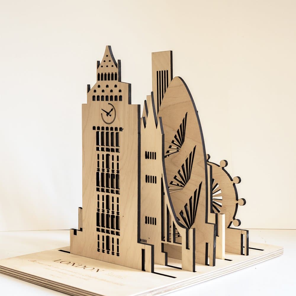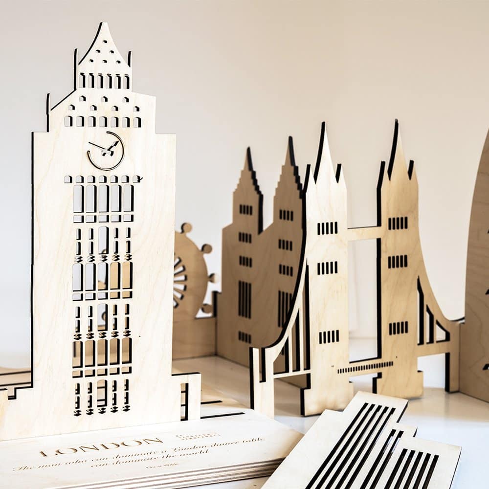6 edificios emblemáticos de Londres hechos de madera contrachapada de abedul 100% sostenible y certificada.Puede montarse individualmente o en combinación con nuestros otros productos