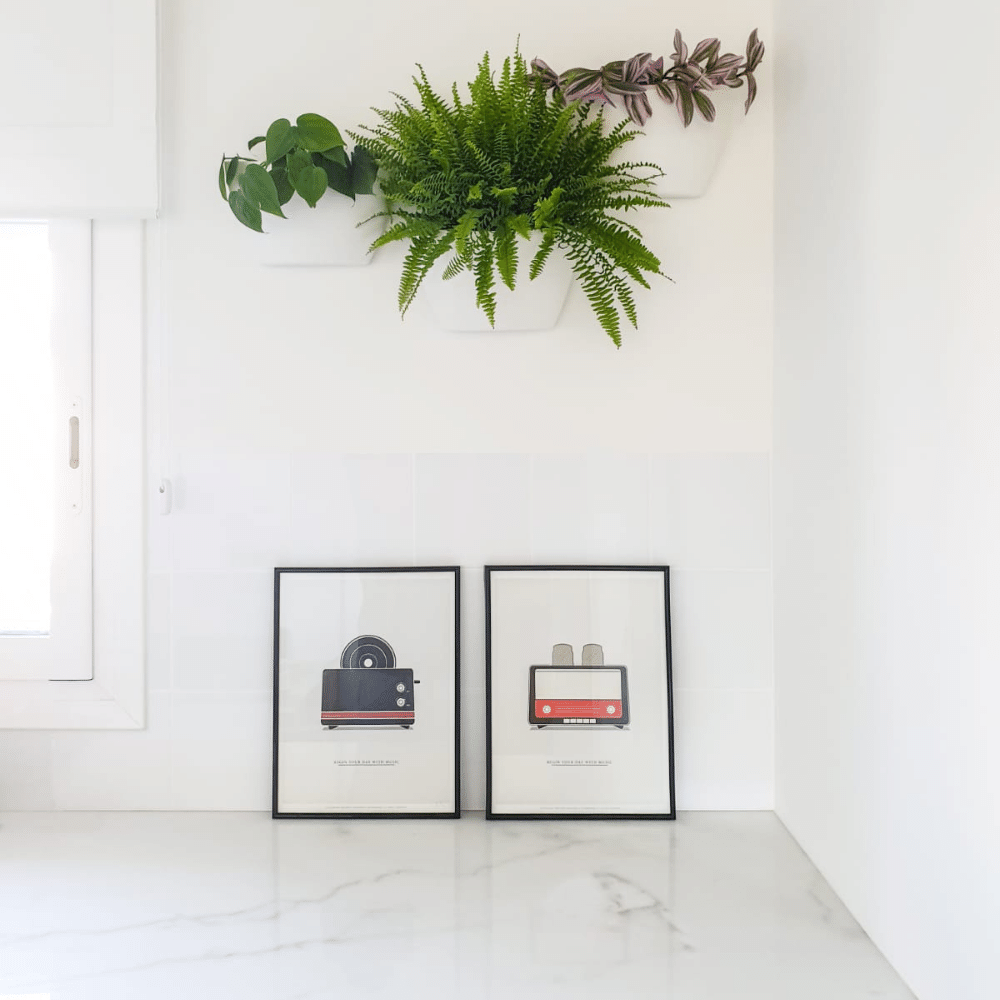 – Ganchos sin clavos: fija la maceta sin usar clavos ni taladros en paredes de yeso, maderas blandas y pladur. Soporta hasta 8 Kg de peso y las marcas en la pared son prácticamente invisibles.