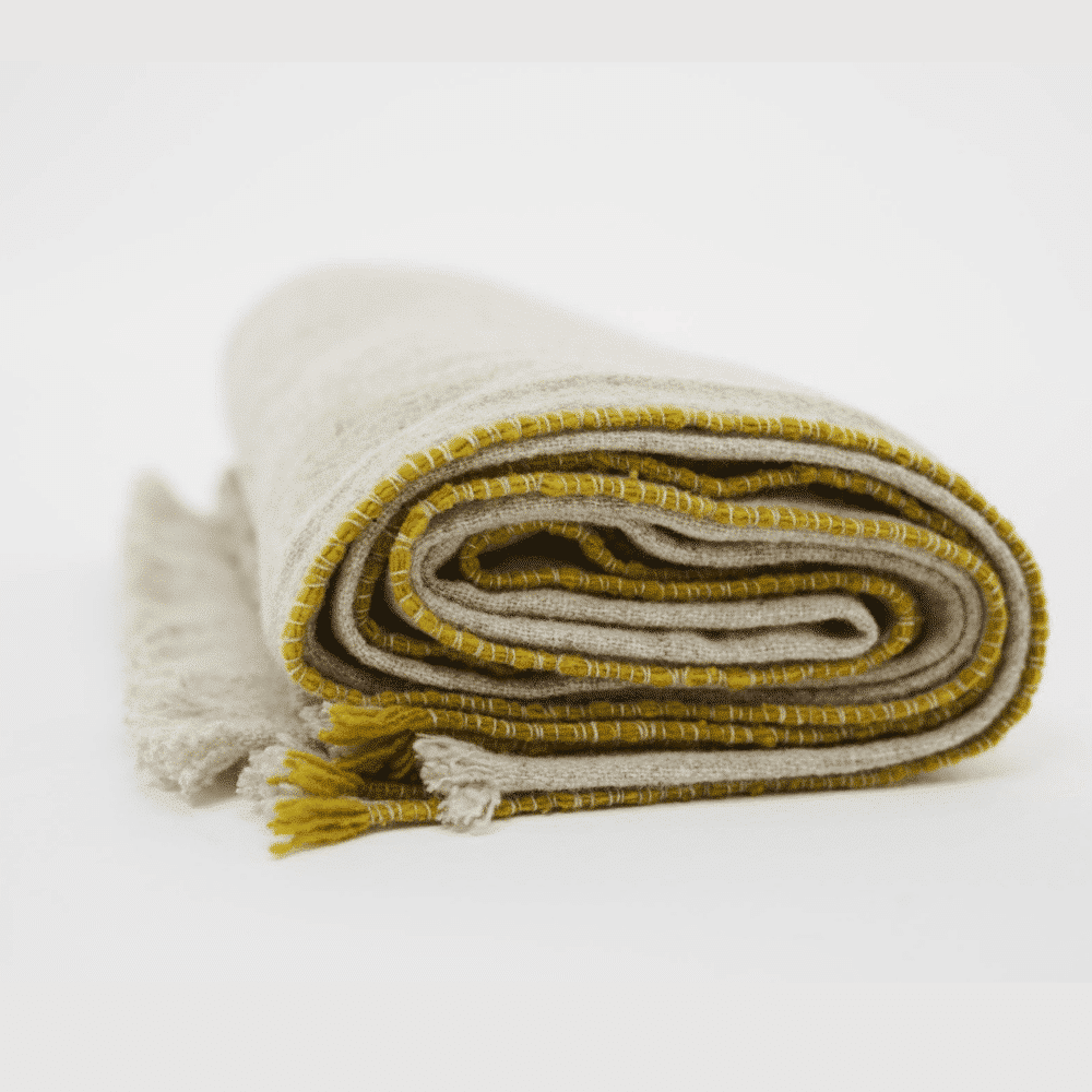 En los tradicionales telares de madera se crean piezas únicas. Los telares manuales permiten crear fronteras deliciosamente imperfectas en las piezas. Cada pieza se convierte en una obra de arte llena de matices, reflejando la individualidad de cada tejedor.