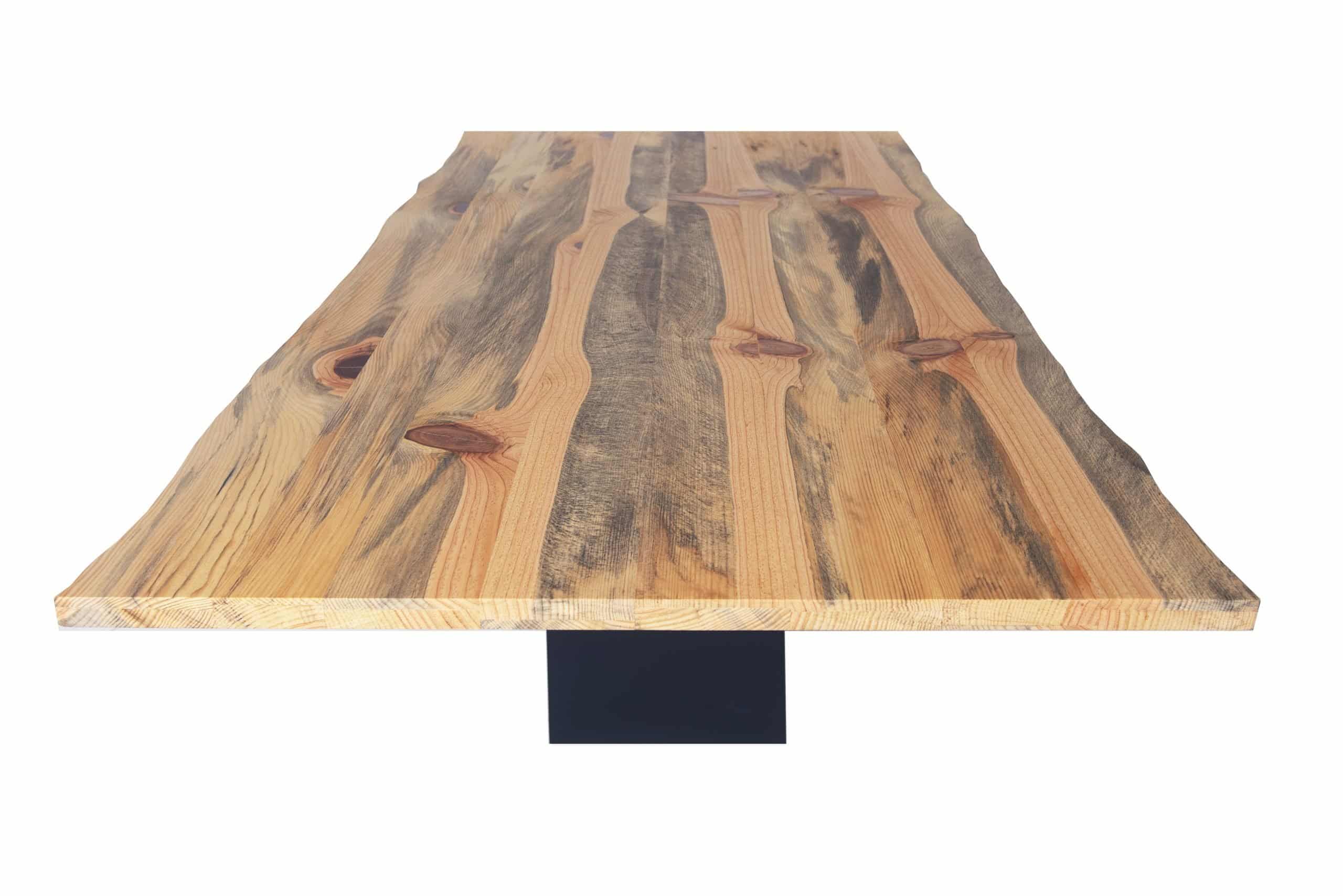 Su perímetro es ligeramente irregular siguiendo la forma natural del tablón.
