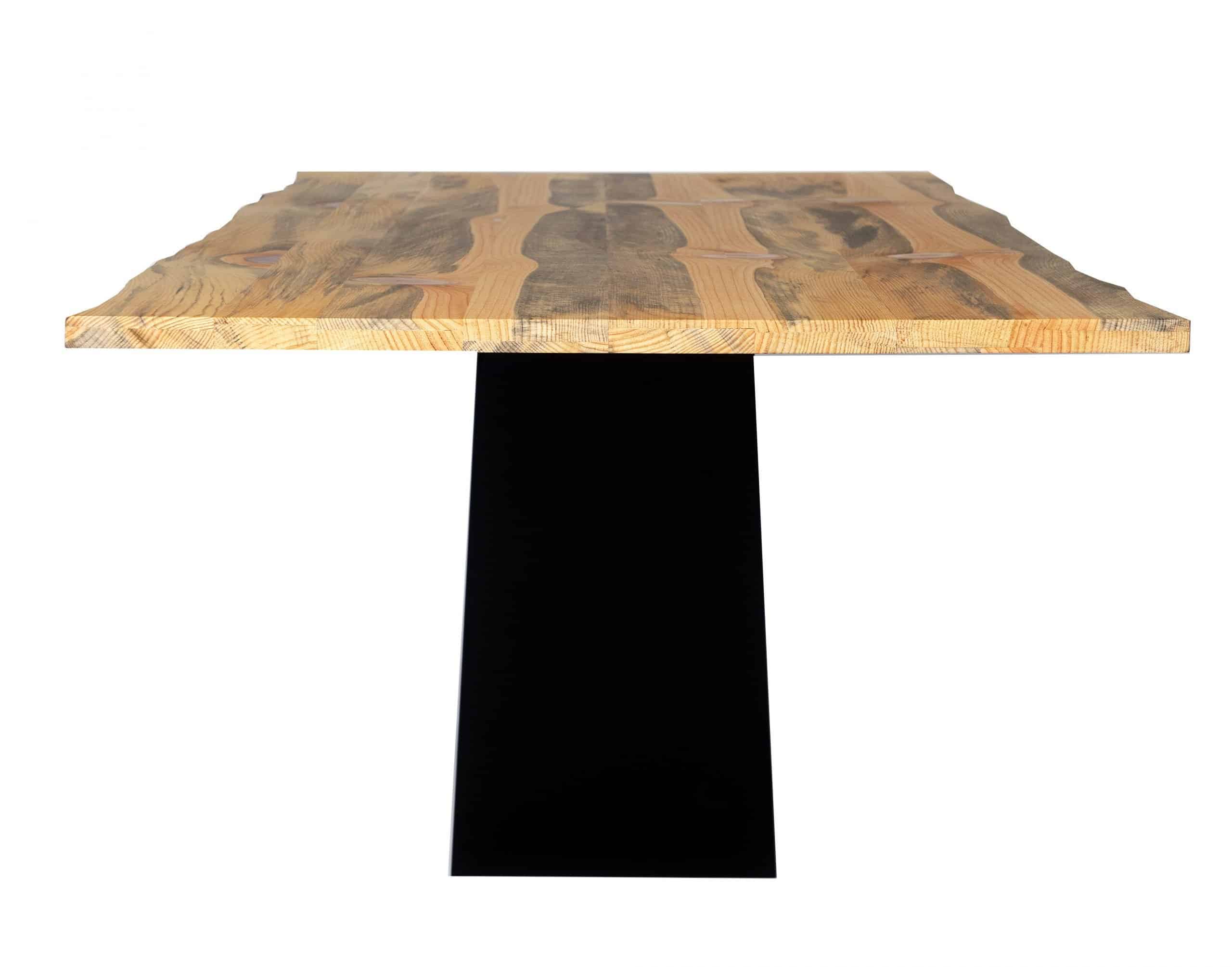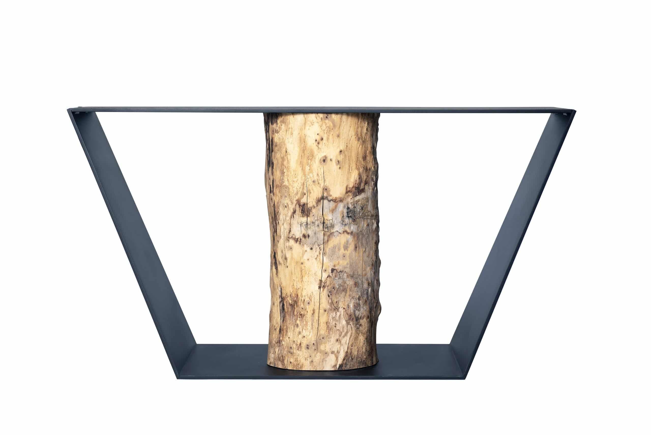 El tablero, formado por varios tablones colocados sucesivamente encolados, se apoya sobre un soporte metálico en U, que da sujeción y firmeza al tablero, pero que mantiene la misma idea. Ya desde una vista lateral genera también esa misma imagen de “árbol”. Los tableros como las copas de los árboles forman su identidad en la forma que crean sus formas, ramas, etc. Buscamos que cada uno de estos tableros también tenga esa identidad propia.
