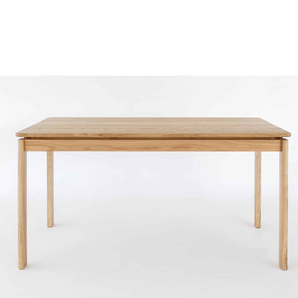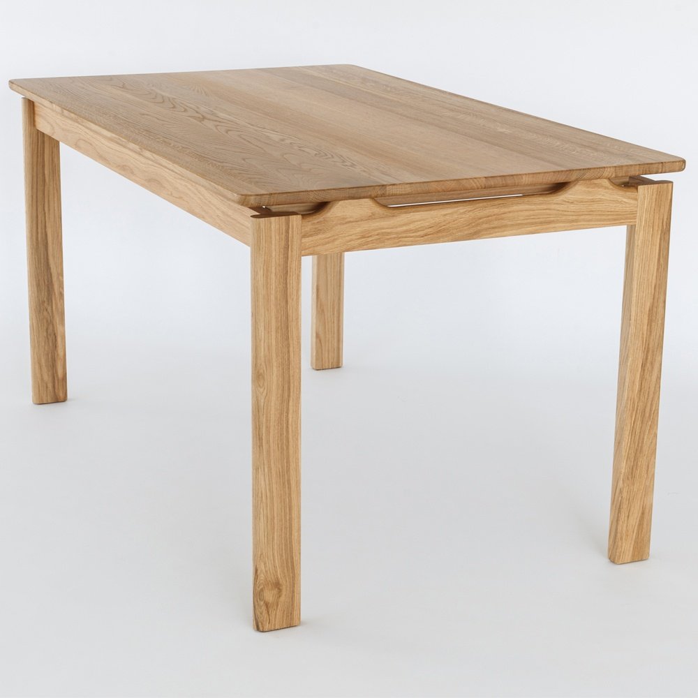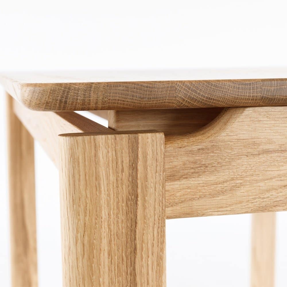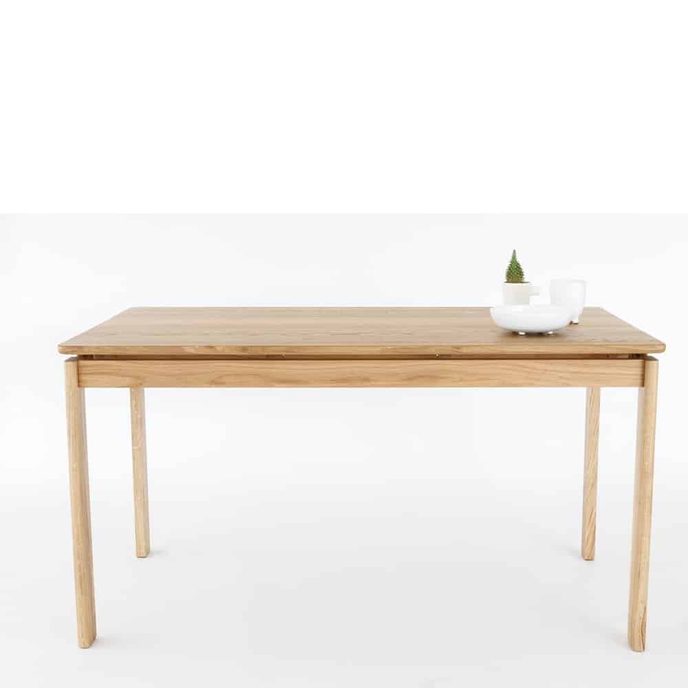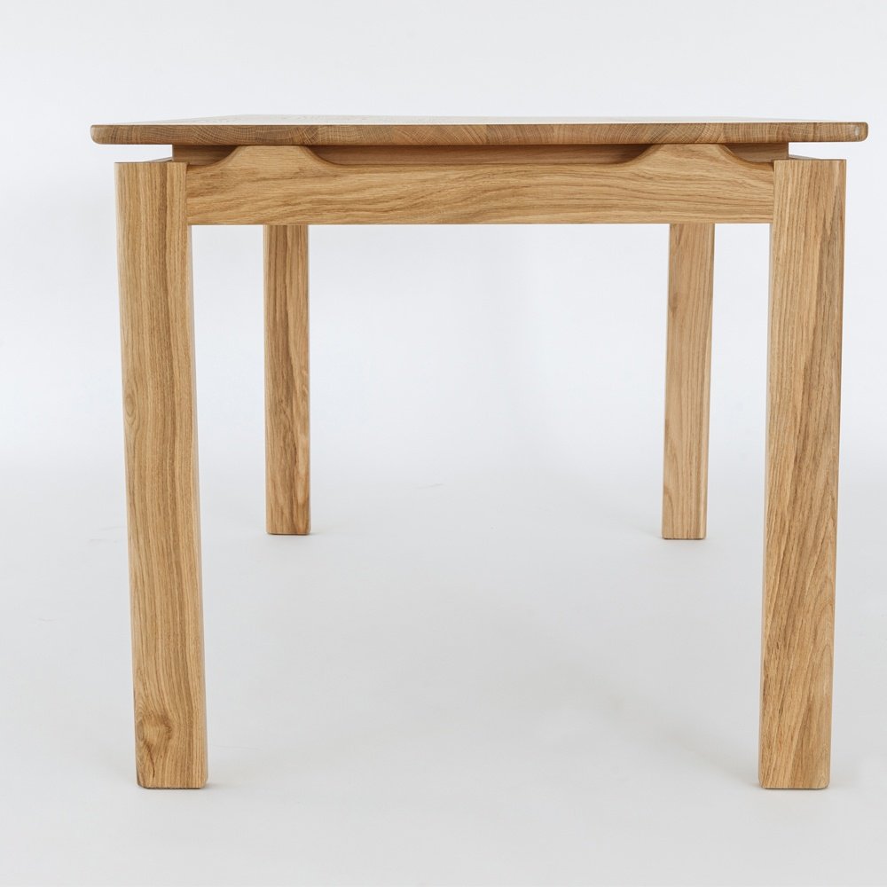 Mesa de comedor ecológica producida en madera de Roble macizo y acabada en barniz natural mate y cepillado, detalle que consigue resaltar la veta de la madera. Aporta un diseño original y muy sugerente, De diseño exquisito, esta mesa de comedor de madera presenta una sólida estructura, si bien el detalle del tablero elevado, la hace más aérea, sofisticada y liviana. Personalizable en Largura