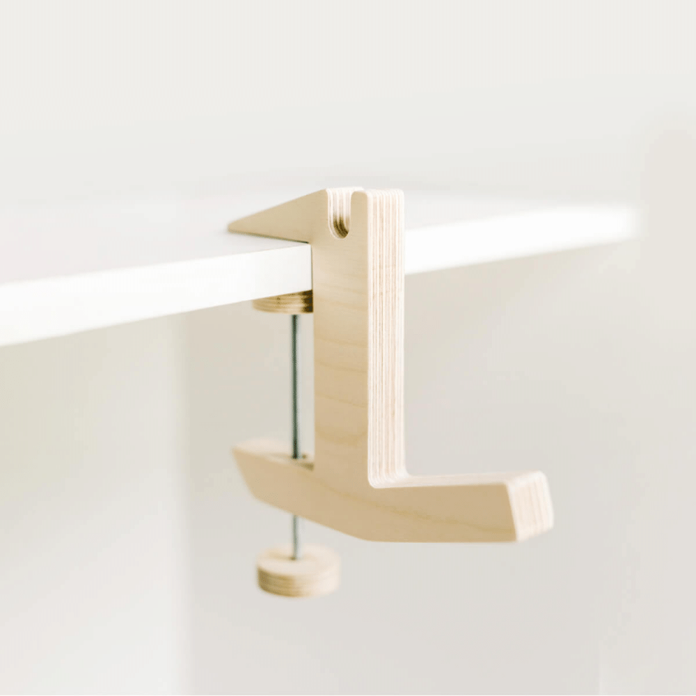 El Serjant es una percha móvil fabricada en madera de abedul. Fija el perchero El Serjant a cualquier superficie plana de hasta 6 cm de grosor y una base de al menos 3 cm (una mesa, una estantería o una barandilla, por ejemplo) y cuelga en él accesorios como los auriculares, el paraguas, el casco, el bolso, la chaqueta, la correa del perro, la planta colgante ¡o cualquier otro objeto que estorbe! El producto es adecuado para mesas de oficina, escritorios, mesas de comedor o de café, estanterías.
