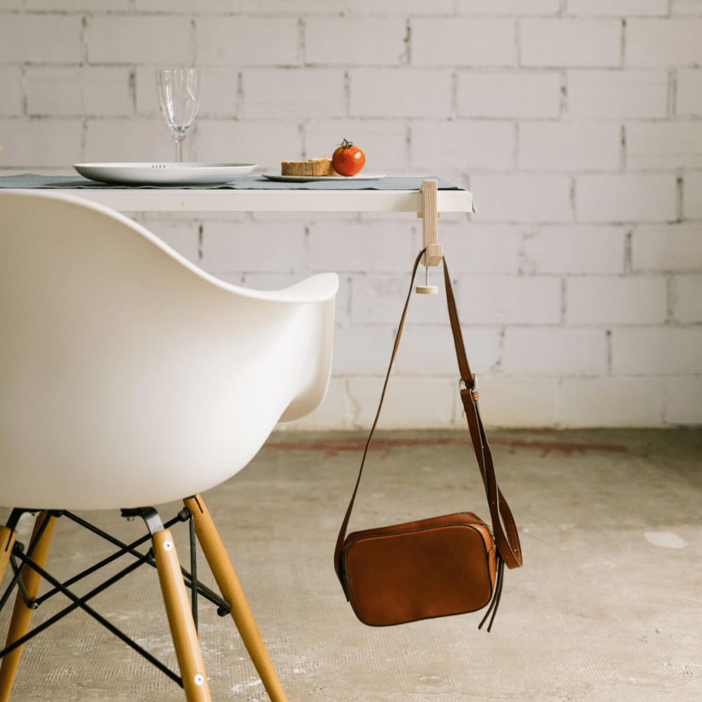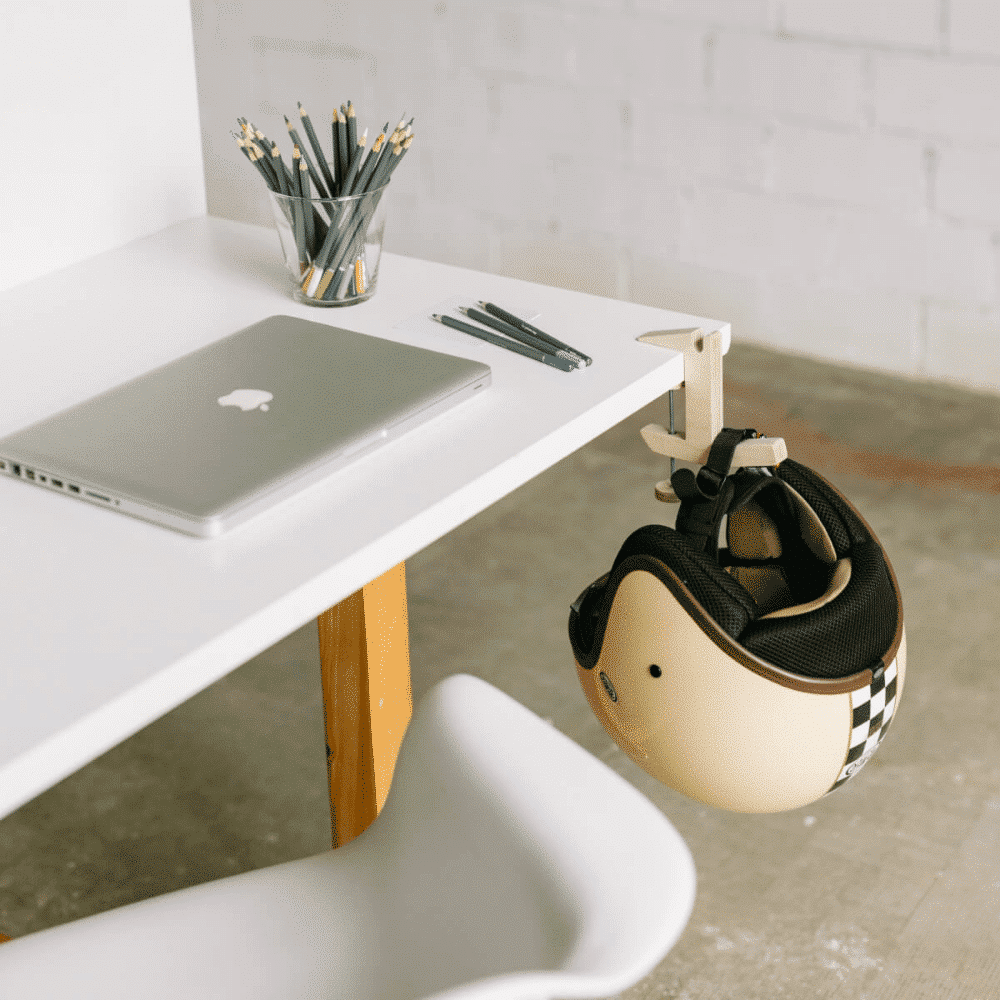 Para utilizar El Serjant, simplemente debes fijarlo a cualquier superficie plana de hasta 6 cm de grosor y una base de al menos 3 cm (una mesa, una estantería o una barandilla, por ejemplo). Luego estará listo para colgar en él accesorios como auriculares, el paraguas, el casco, el bolso, la chaqueta, la correa del perro o incluso otros más relacionados con la decoración como una planta colgante. El Serjant es ideal tanto para el hogar como para la oficina.