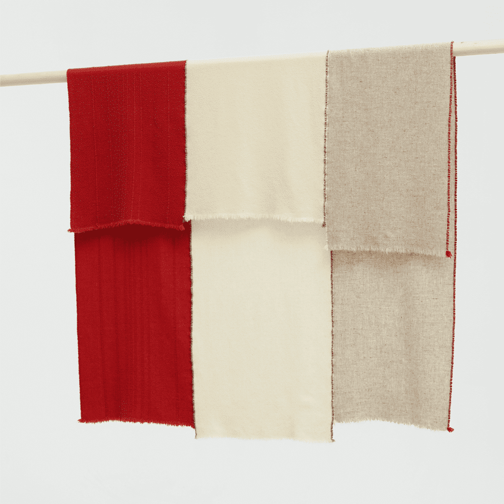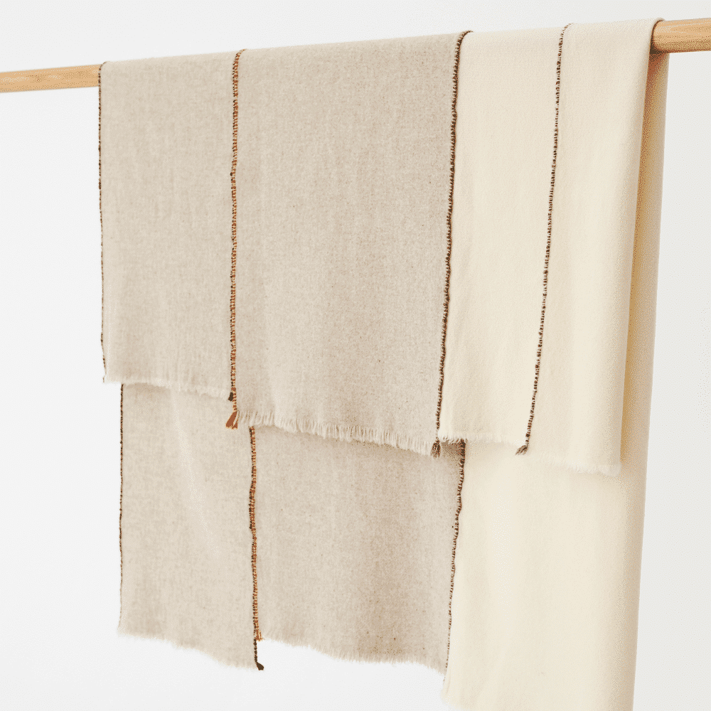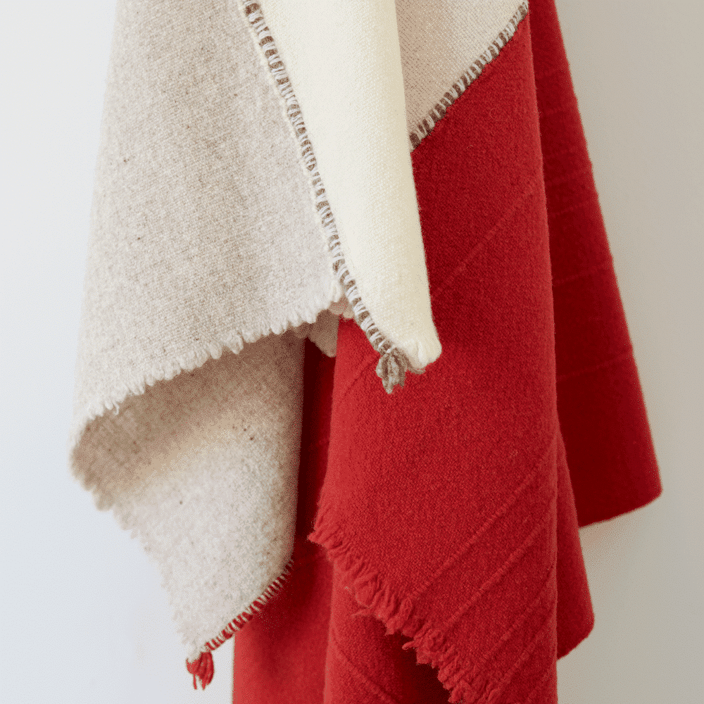 En los tradicionales telares de madera se crean piezas únicas. Los telares manuales permiten crear fronteras deliciosamente imperfectas en las piezas. Cada pieza se convierte en una obra de arte llena de matices, reflejando la individualidad de cada tejedor.