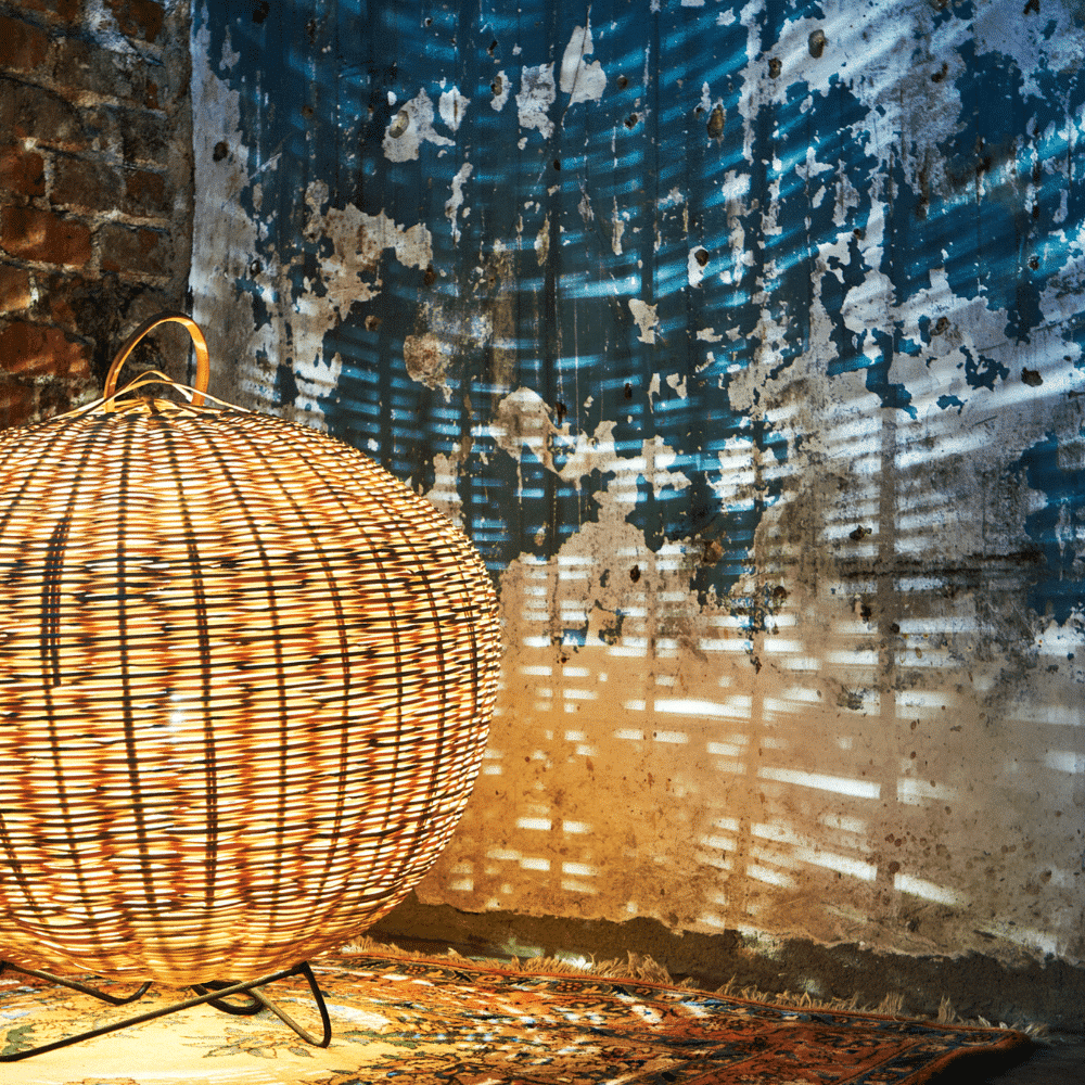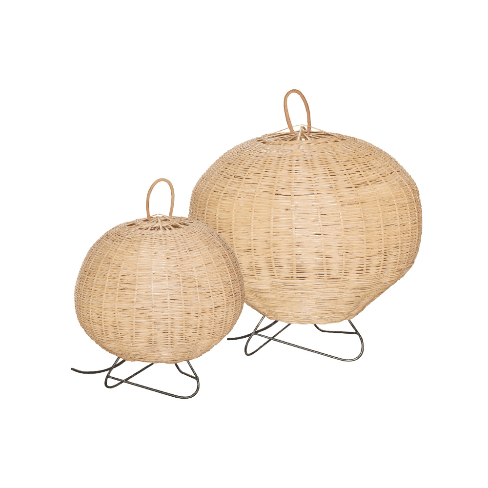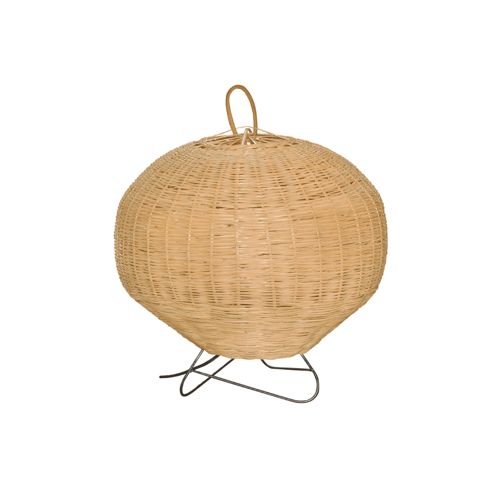 La caña es una fibra natural. En Let’s Pause lo trenzan y unen para hacer sus lámparas y cestas. Todos están hechos a mano. No le aplican ningún tratamiento de protección ni barniz ni ceras. Como todas están hechas a mano las medidas son aproximadas.