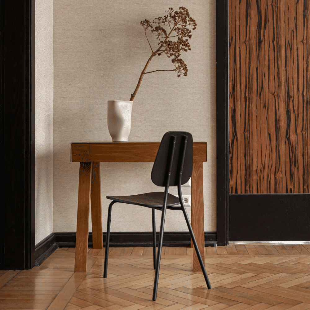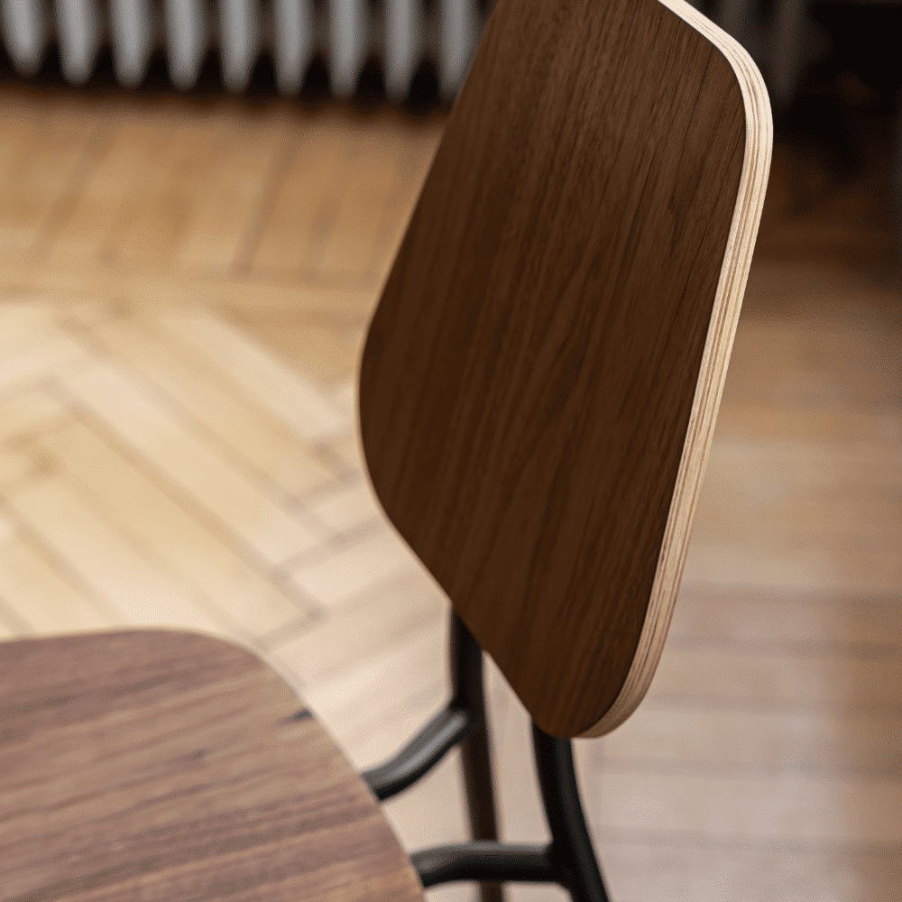 La silla Hoya se inspira en las plantas: su crecimiento, su desarrollo y la apertura de hojas grandes, tranquilizadoras y envolventes. Es un pequeño homenaje a la madre naturaleza y a su protección, pero también un recordatorio de su fragilidad. La silla Hoya consta de una estructura de metal negro y respaldo y asiento de madera contrachapada chapada, disponible en tres acabados: aceite natural, pintura negra o nogal.
