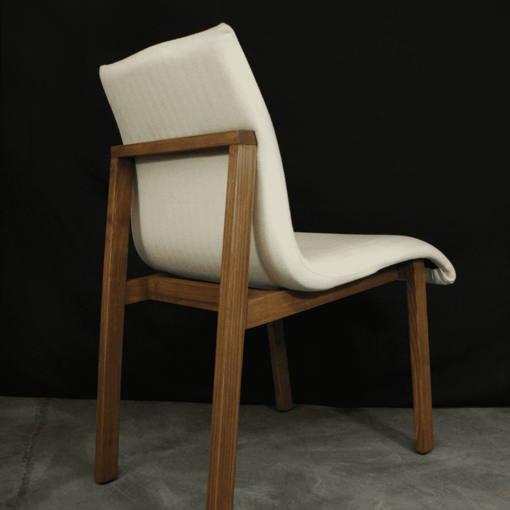 La silla de comedor sostenible Mosela, es una pieza sin reposabrazos indispensable en cualquier salón o restaurante que busque dotar al espacio de equilibrio y serenidad.