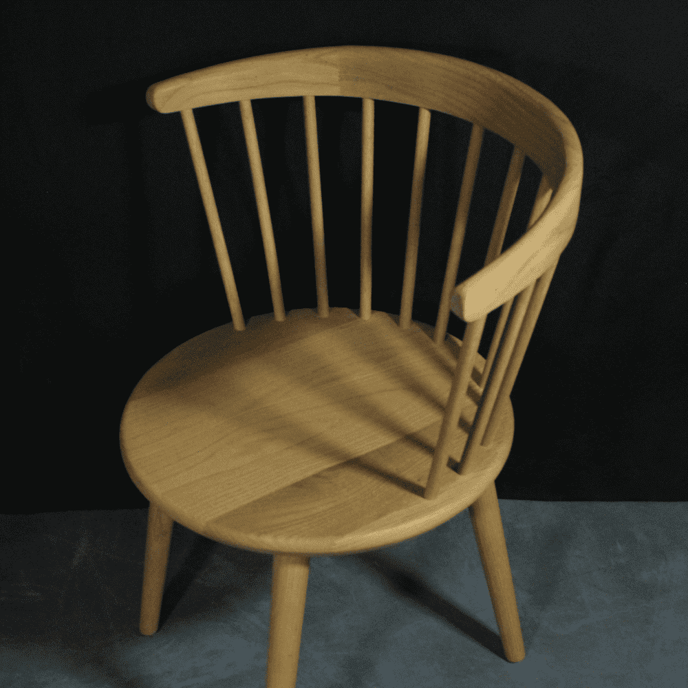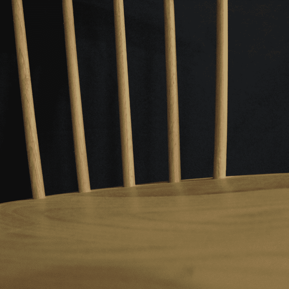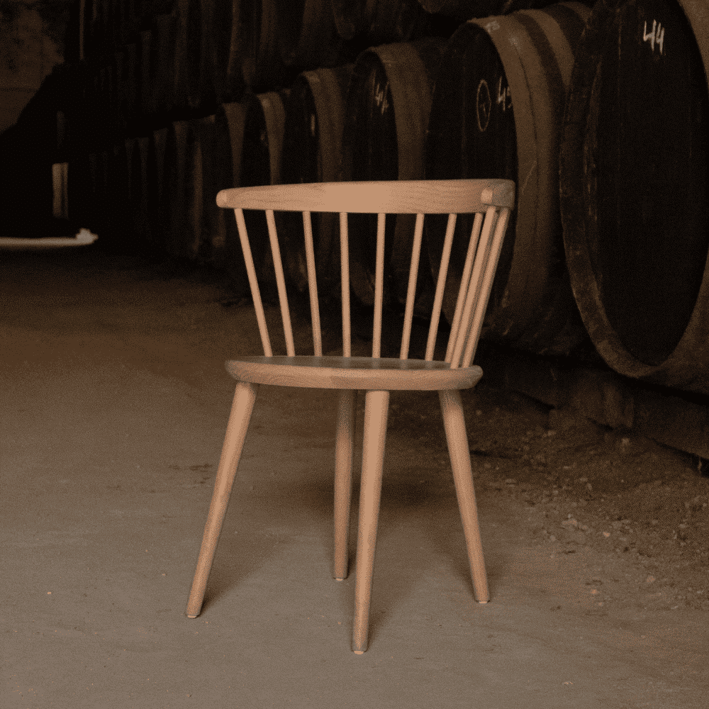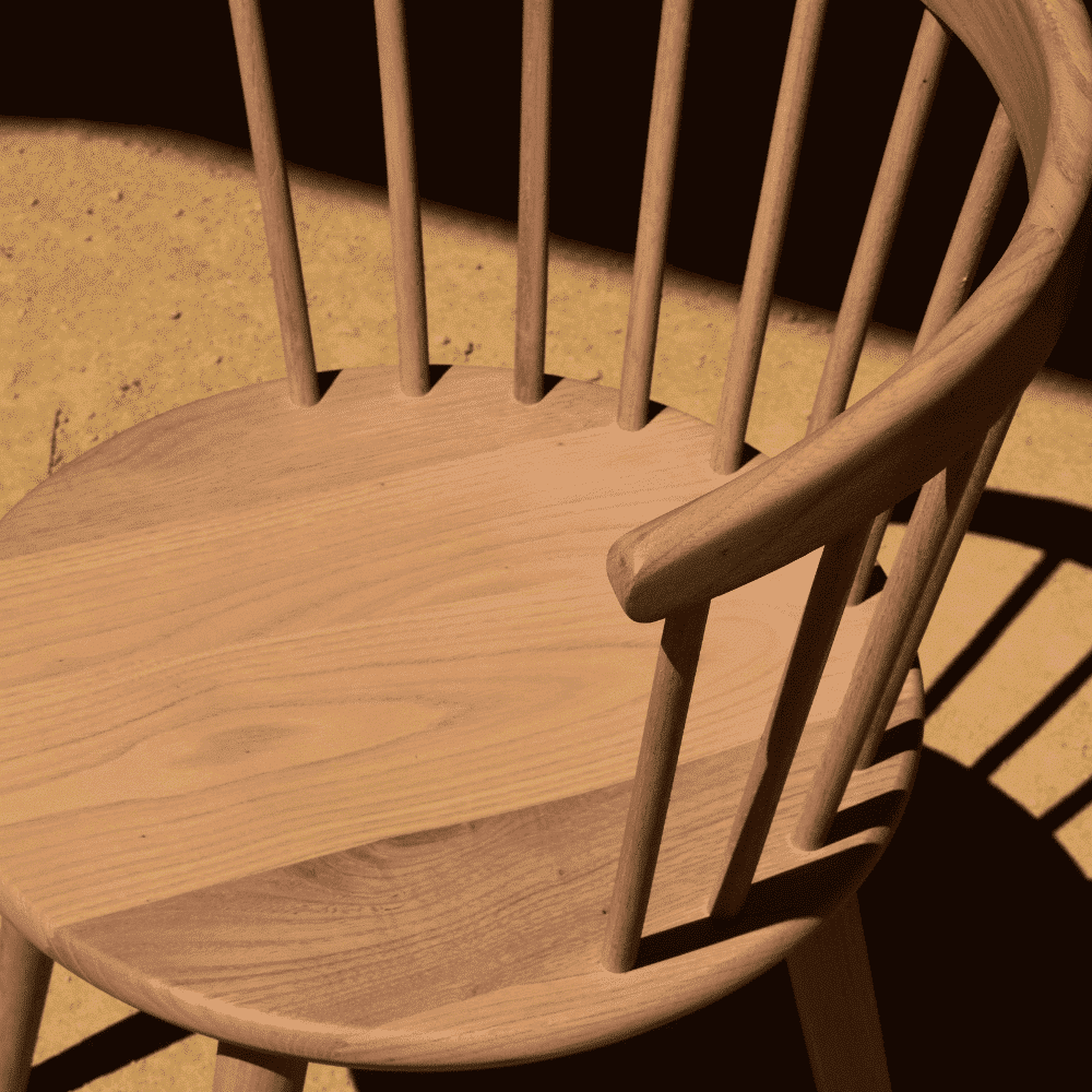 La silla de madera Mosa es una silla de comedor o salón sostenible realizada en madera de Fresno certificada.