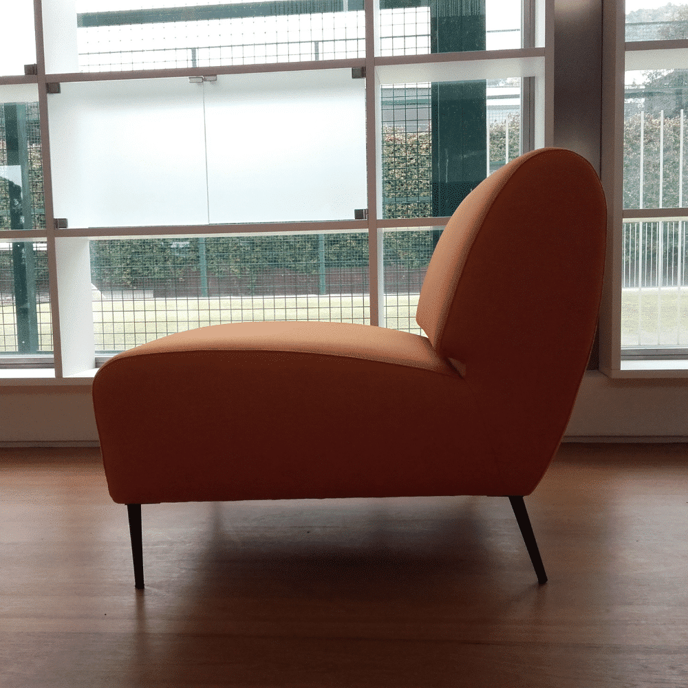 Con el sillón pequeño VESPER, ¡nunca te avergonzarás de sus reposabrazos! Propone un diseño sobrio, puro y preciso.