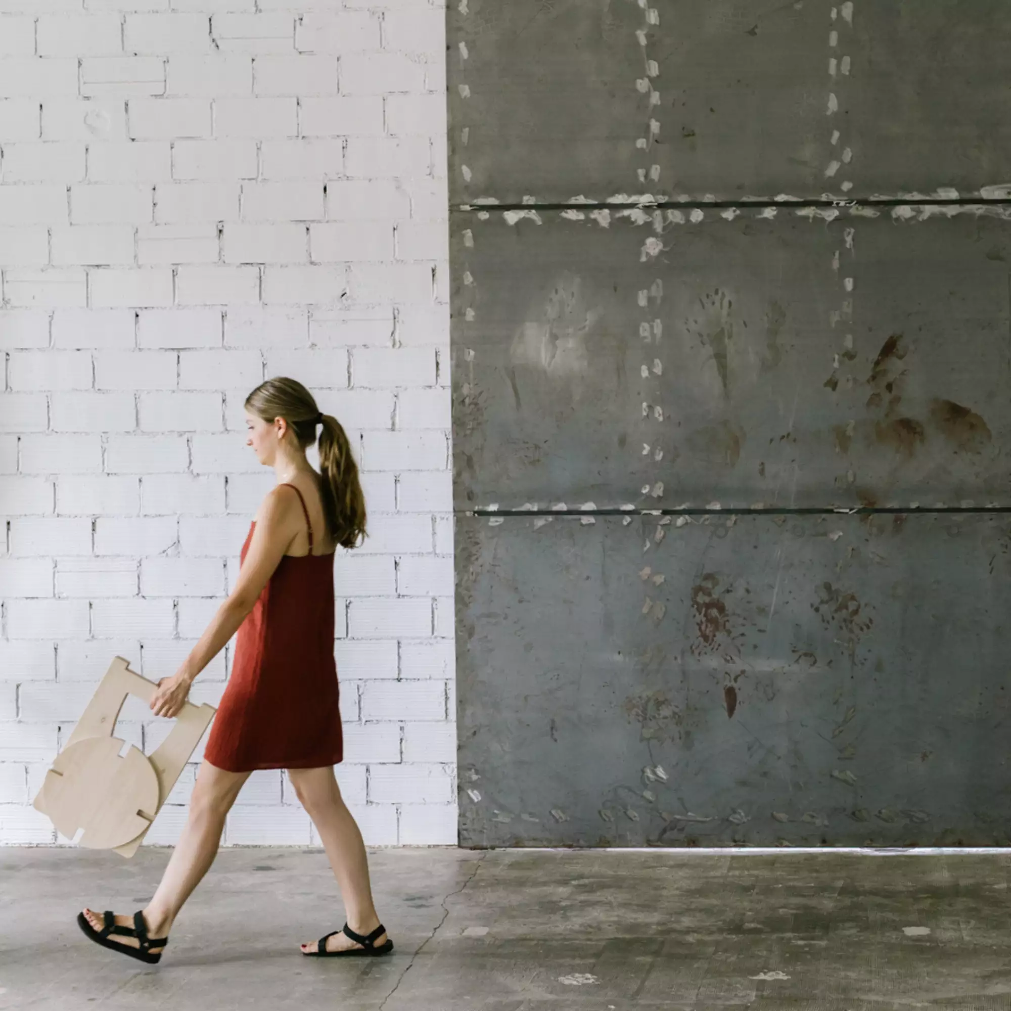 El Tamboret es un taburete desmontable y que se puede utilizar para sentarse, por supuesto, pero también como mesa de centro, reposapiés o soporte para plantas, por ejemplo. Se puede montar y desmontar sin herramientas de ningún tipo, por lo que se puede almacenar para optimizar el espacio y llevarlo arriba y abajo si hace falta.