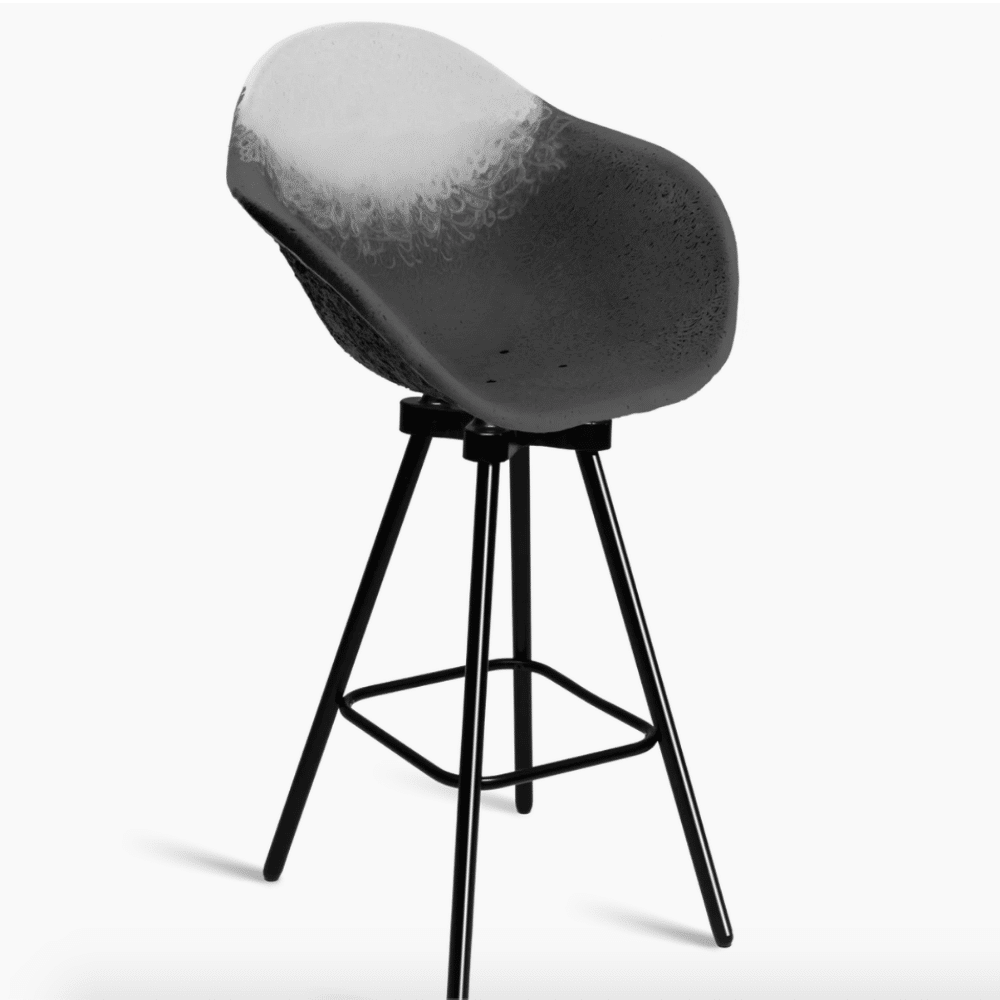 Un molde unilateral recoge el material fundido, contrastando una superficie interior controlada y cómoda con una superficie exterior irregular que lleva la historia de su proceso de fabricación. Así es como se crea el Taburete Sillón Gravene 8.8 con patas de metal. El corte de tubos en las cerrajerías industriales genera sistemáticamente recortes, a menudo demasiado cortos para ser vendidos. Sus dimensiones son perfectas para fabricar una pata de asiento. A continuación, se recubren de polvo y se engarzan en una placa de plástico, lo que convierte al Gravêne en un asiento tan cómodo por fuera como por dentro.