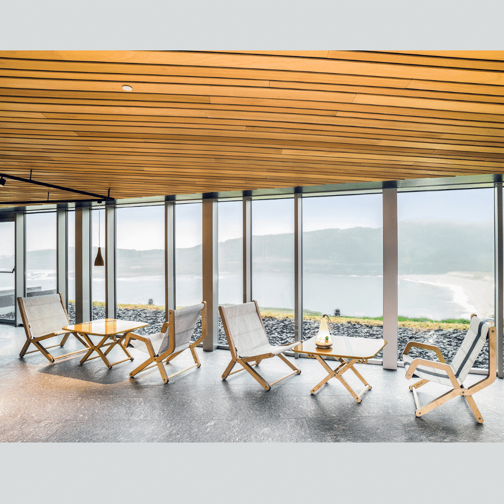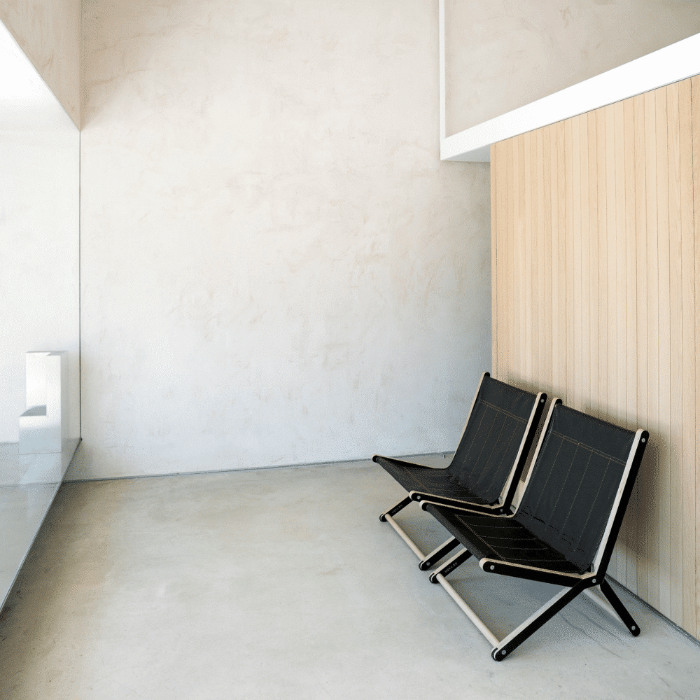 La silla Tack es plegable y apilable. Está compuesta por una estructura articulada de madera laminada contrachapada fenólica de abedul y barras cilíndricas de sicomoro.